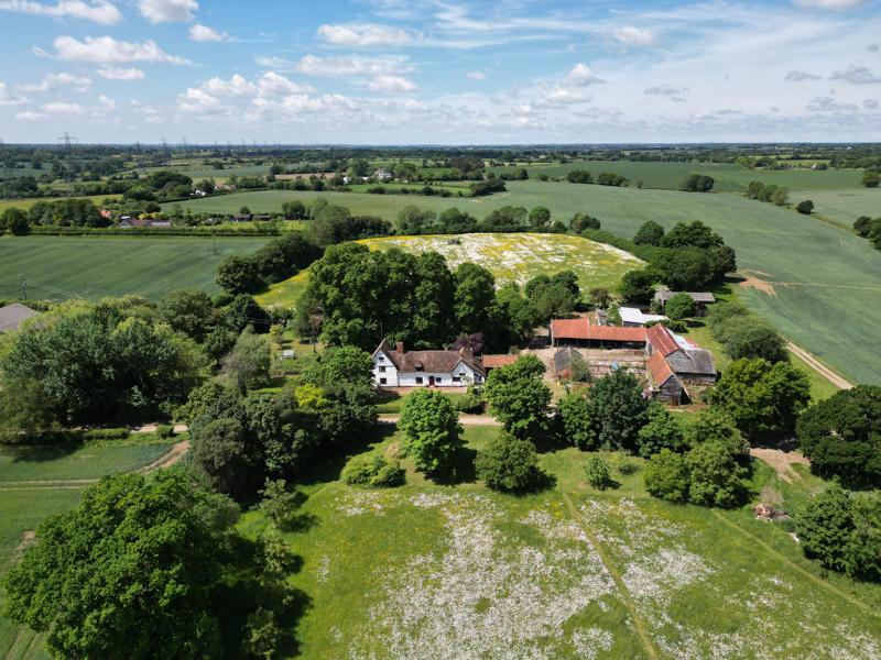 The grounds to the house measure approximately 1.5 acres and include formal gardens, a pretty courtyard made from original York stones taken from the barn, orchard, veggie space and space to play cricket and tennis on the lawn. The garden was always very productive with a large veggie plot and greenhouse. The owners would grow an array of produce including potatoes, onions, leeks, broccoli, and runner beans to fill the freezer for winter, so this is the perfect place for green-fingered enthusiasts. The orchard to the side has a variety of fruit trees including eating and cooking apples, eating and cooking pears, plum, greengage and wonderful cobnut and walnut trees. The house has two ponds, one now dry, and these could be reinstated to create the kind of childhood of days gone by – building dens and making rafts to float on the pond. By the pond, at the back of the house, are substantial brick foundations, the remains of a large building from 1857, that could easily be reinstated as an annex subject to planning. The gardens attract plenty of wildlife including Mallards, Muntjac deer, hares, rabbits and pheasants which are often seen strolling across the lawn. The wildflower meadow to the front has been thirty years in the making at approximately 3.5 acres, and displays a plethora of wildflowers throughout the spring and summer months - cowslips, ox eye daisies, buttercups, pyramid and bee orchids, cornflowers, pimpernel, chicory to name just a few. All this in one property which is situated at the end of a no through lane which turns into a bridle way, making it a safe area for children and animals to roam. The bridle way with ditches full of primroses in the spring and dog violets on its banks is just one of many walks straight from the house, through the Suffolk countryside.