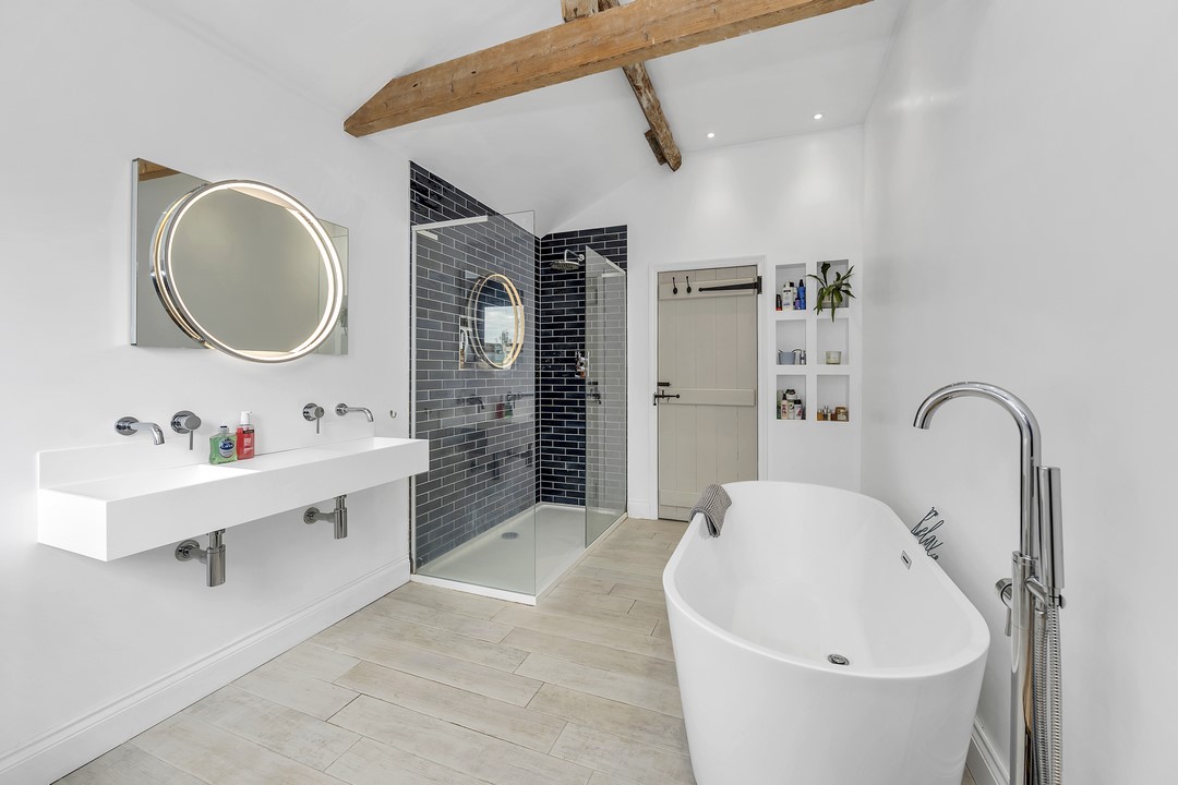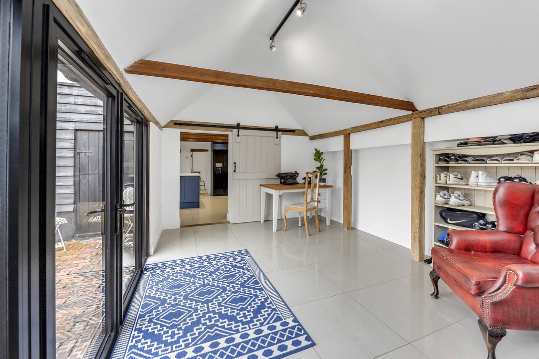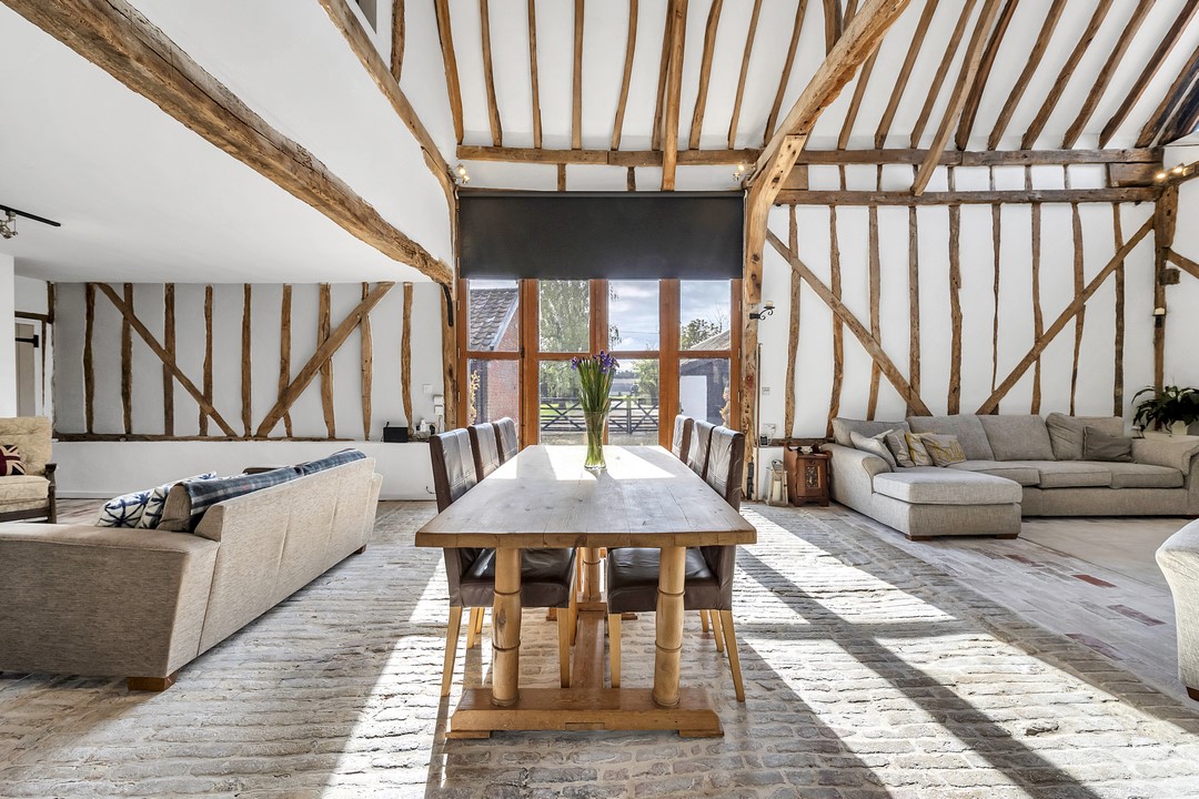 Beautiful Vaulted Barn. This impressive 17th century threshing barn is an unusual and dramatic family home – one you will neither tire of nor grow out of. This U-shaped building, with four bedrooms and three bathrooms in the largest wing, is attached to a separate one-bedroom annexe, another home in itself.