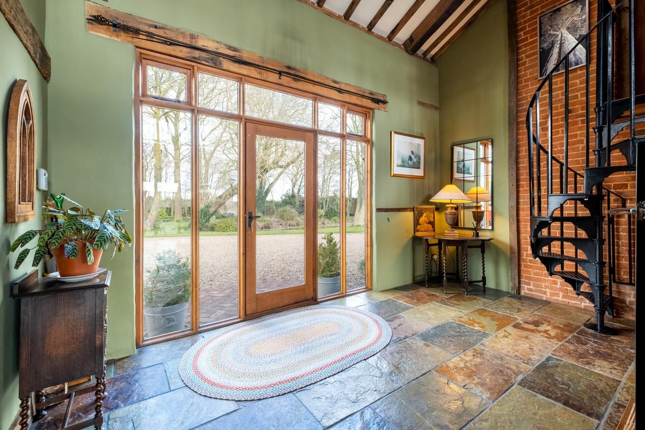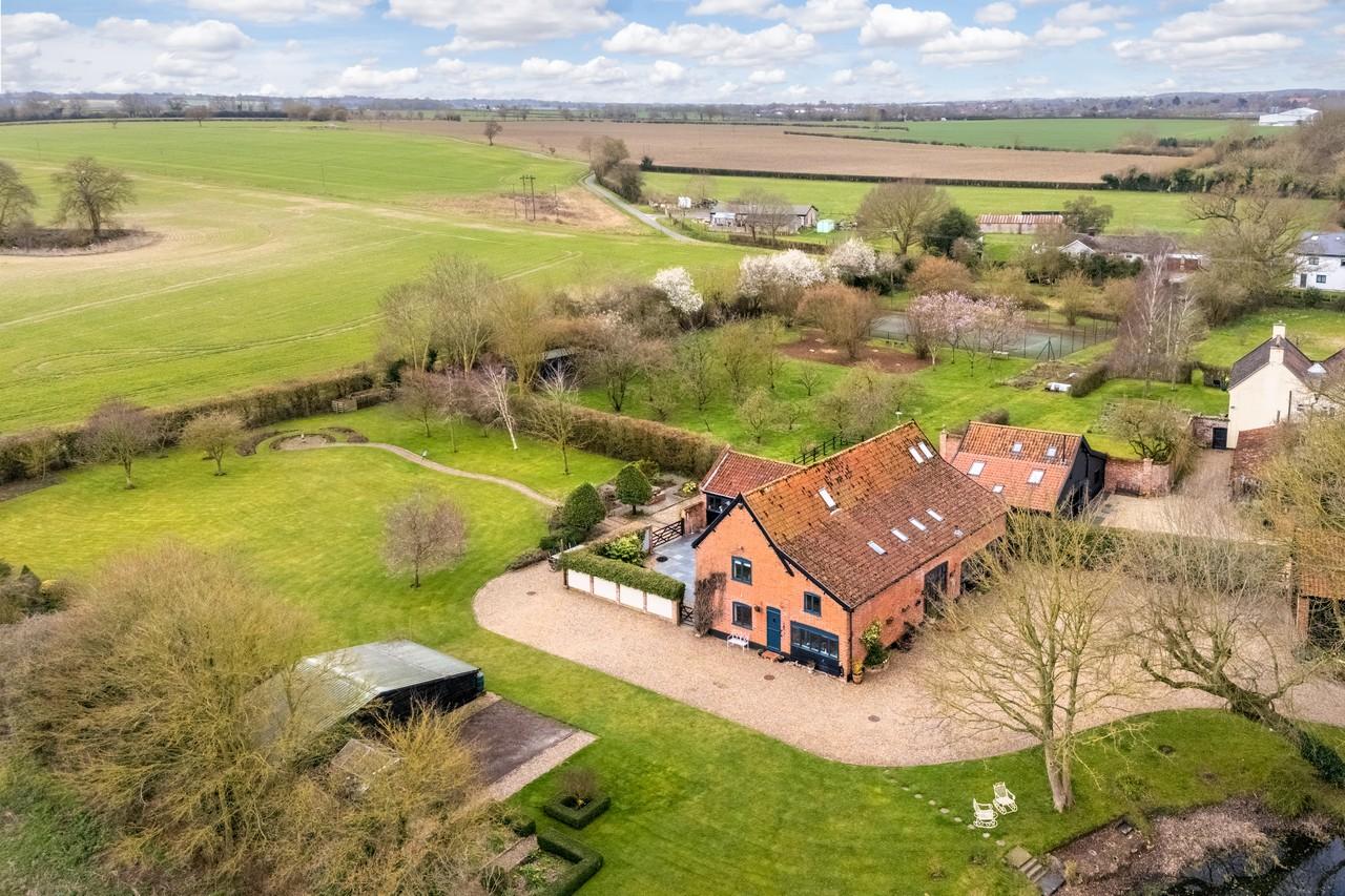 Welcome. “This stunning period barn conversion is set within breathtaking landscaped gardens of over an acre (STMS) and is presented to an exceptional standard in a peaceful, rural location. The property features five spacious bedrooms, a striking open-plan kitchen and breakfast room, a wonderful dining hall, and a superb annexe within the main building. Awash with charming period and architectural features, this fantastic home has been beautifully converted to offer an abundance of character and timeless appeal.”