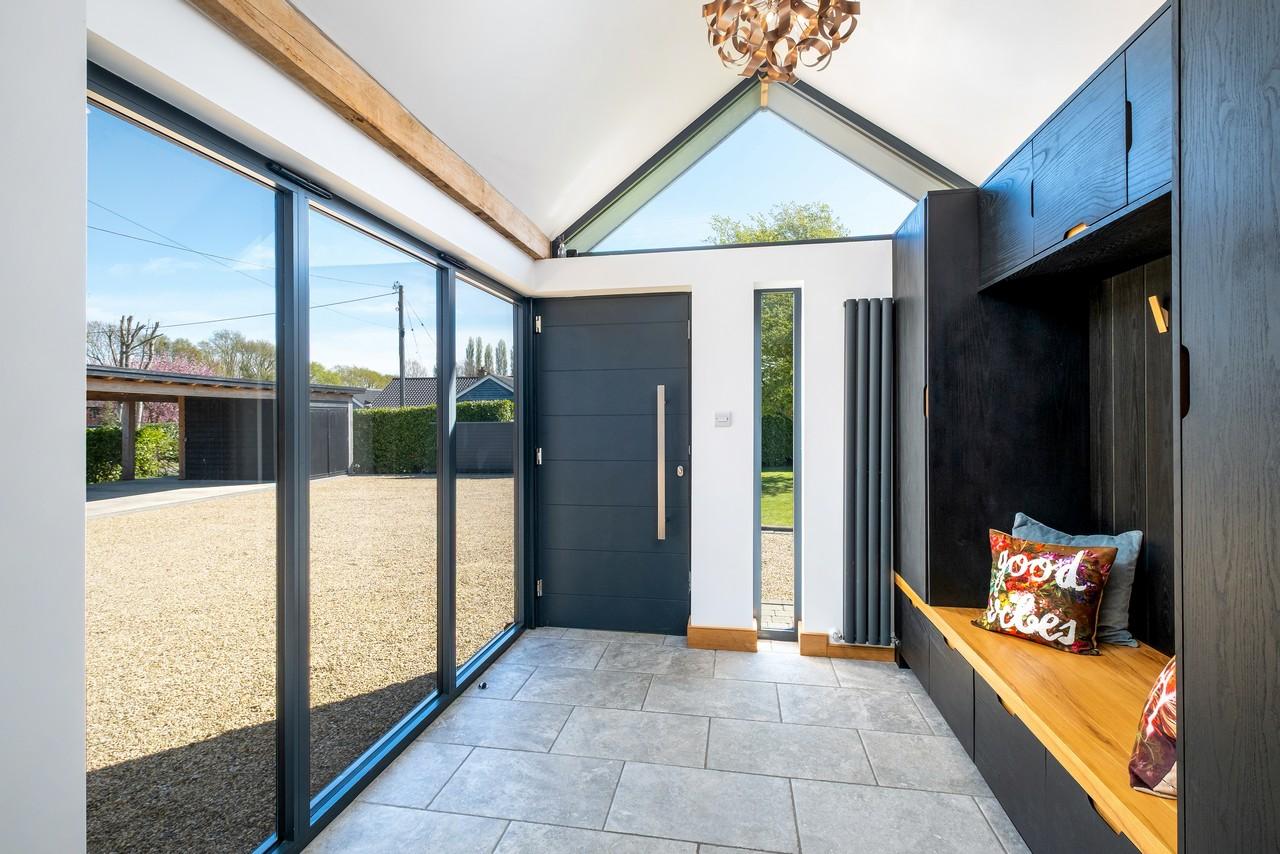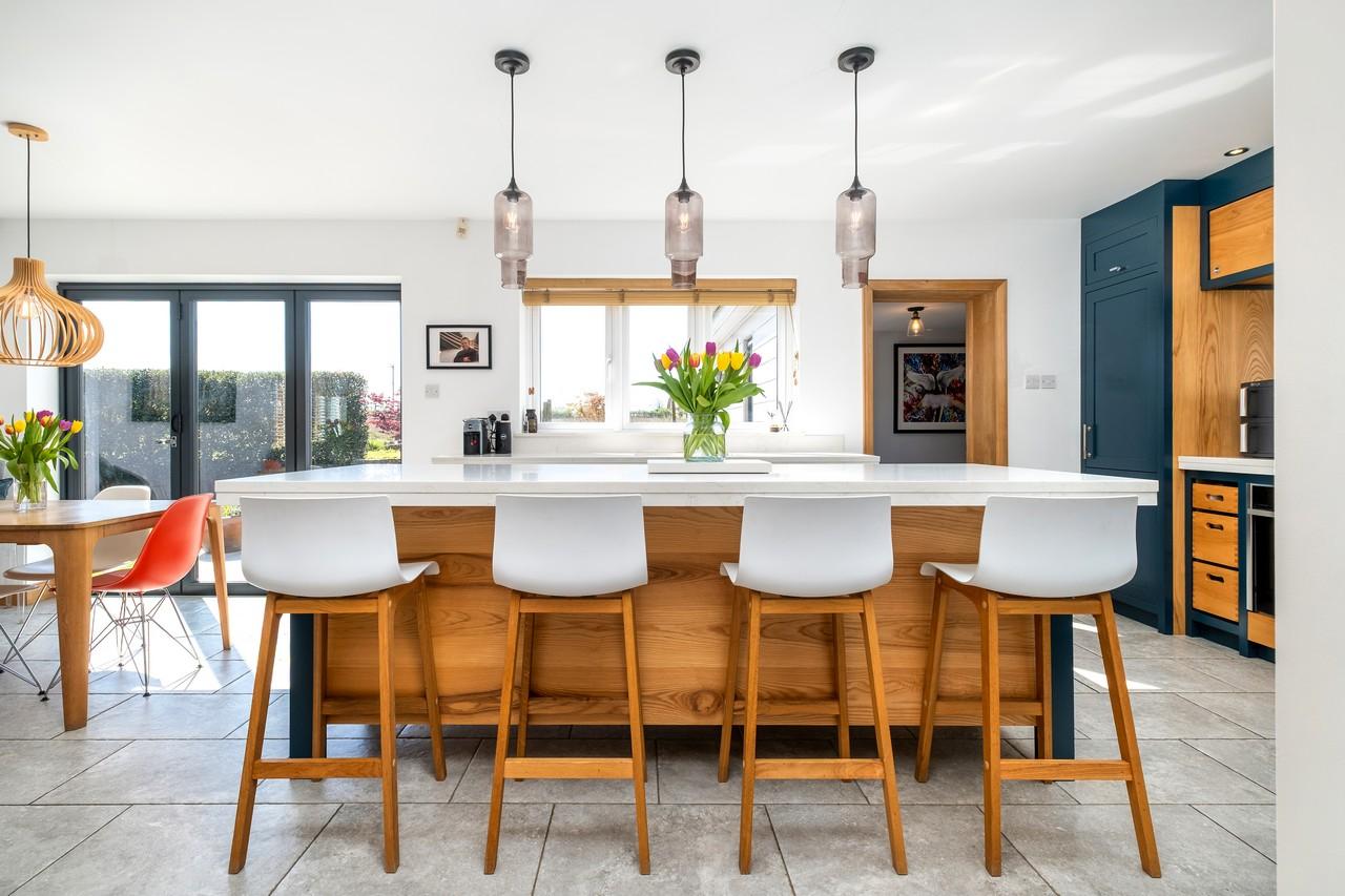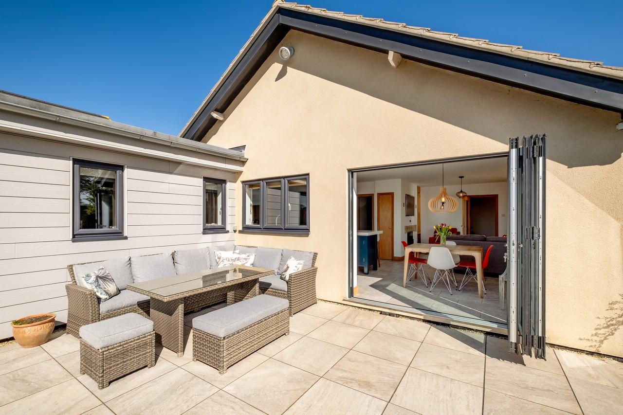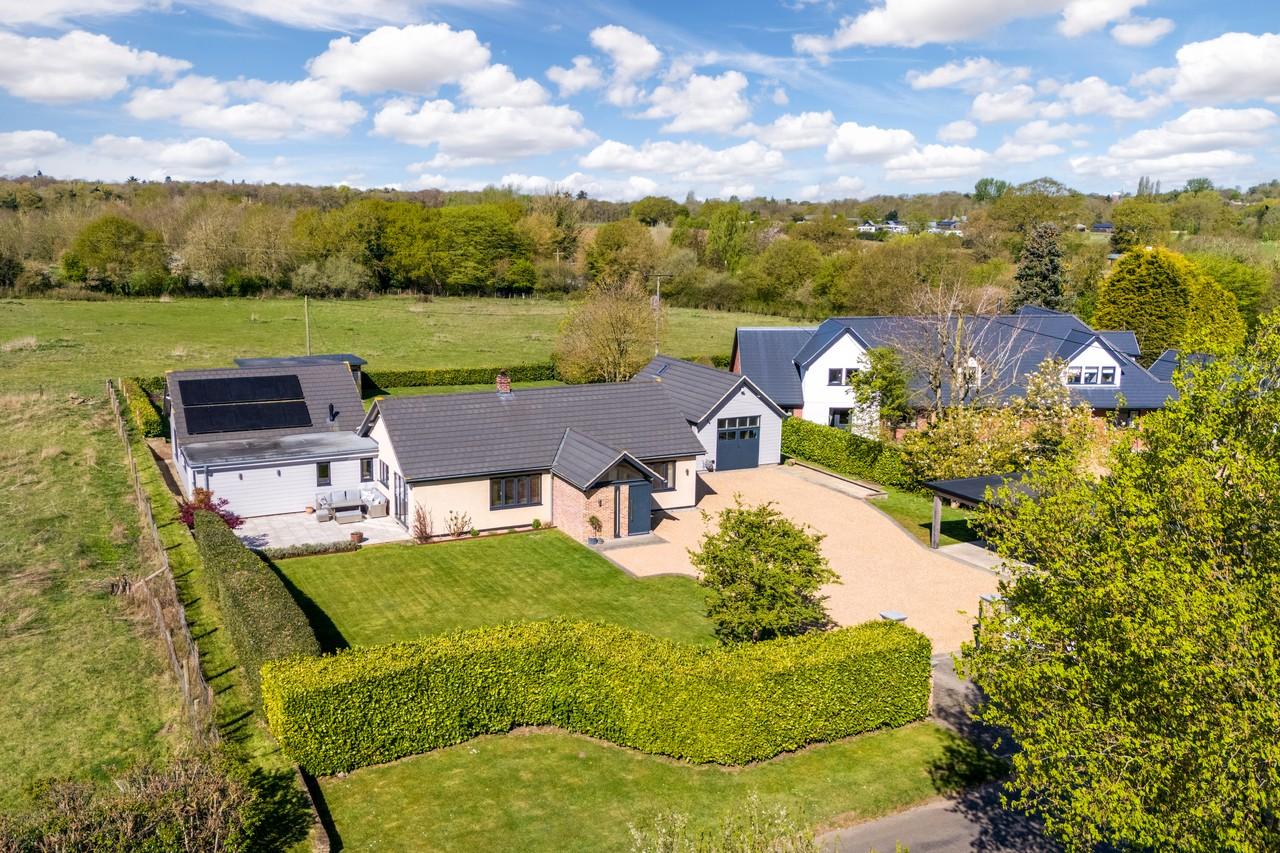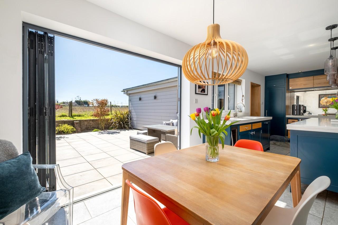 Stylish Single Storey Living. Nestled between three pretty villages with amenities close to hand, this welcoming family home is of sturdy 1960’s original build and has been renovated to pristine condition with thoughtful creativity. The peaceful ambience of this single-story home and grounds along with five bedrooms, three bathrooms, opportunity for ancillary accommodation and a holiday feel garden room – all close to road and rail links makes this fantastic prospect. EPC B