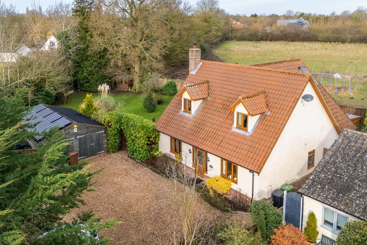 * * * CHAIN FREE * * * Cosy Welcoming Character. Originally a 1945 detached bungalow, renovated and extended to create a welcoming five double bedroom detached house, this home has space for everyone. With four bathrooms and options for bedrooms to function as home office, library room, or gym there are plenty of options for the house to grow with you. The conservatory provides amazing views of the interesting gardens and all set in a pretty village just three miles away from day-to-day amenities.