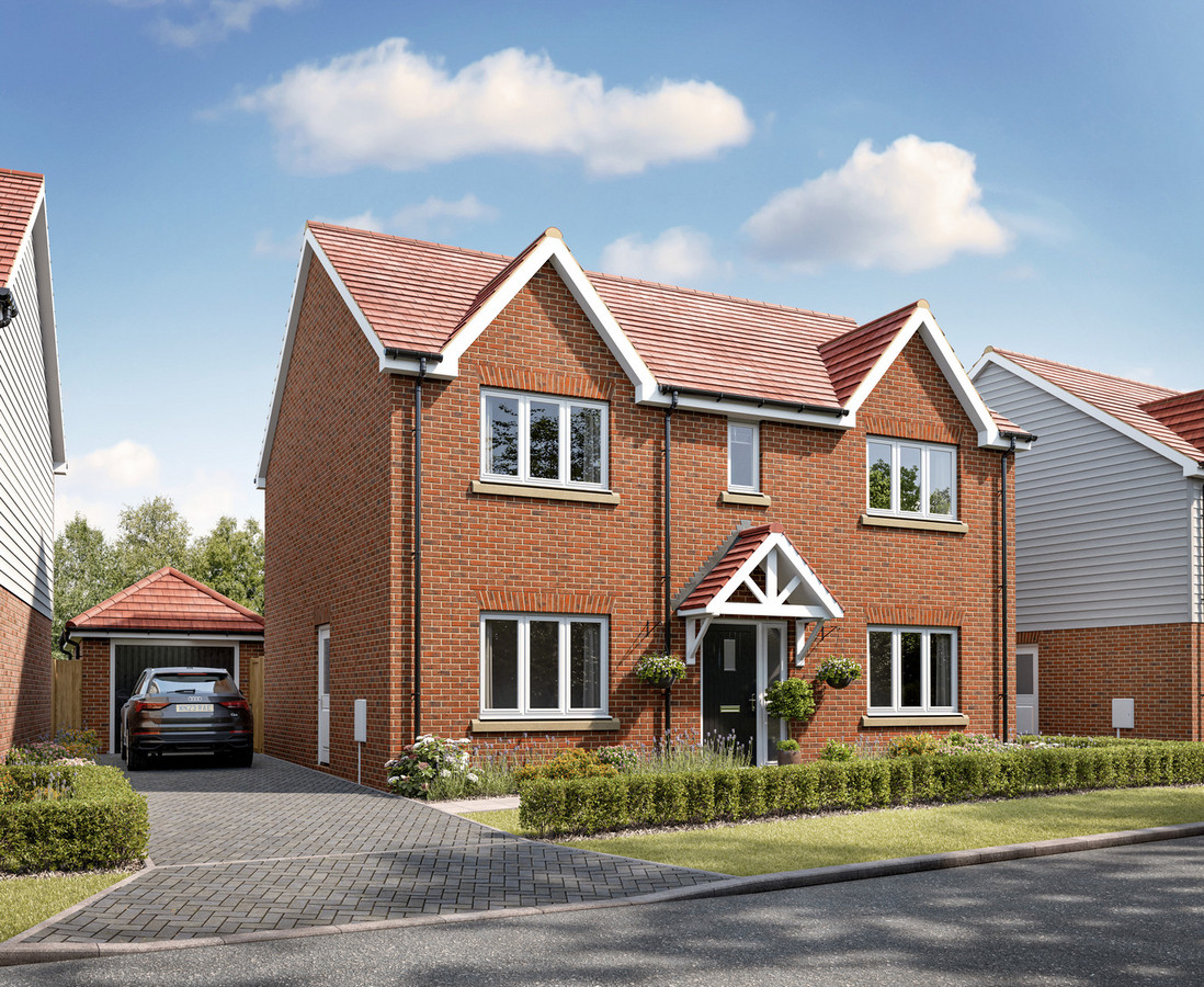 Upstairs, bedroom one includes fitted wardrobes and an en-suite shower room. There are three further double bedrooms, a stylish family bathroom and generous storage provisions.
