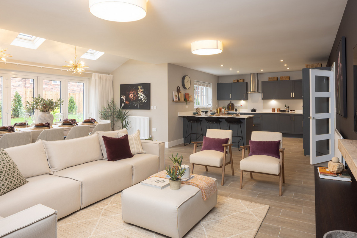 This generous five bedroom detached home features a spacious living room at the front of the property, with a superb open-plan kitchen-dining-family room at the rear, with bi-fold doors to access the garden. There is also a separate study, a utility room with store and a W.C. on the ground floor.