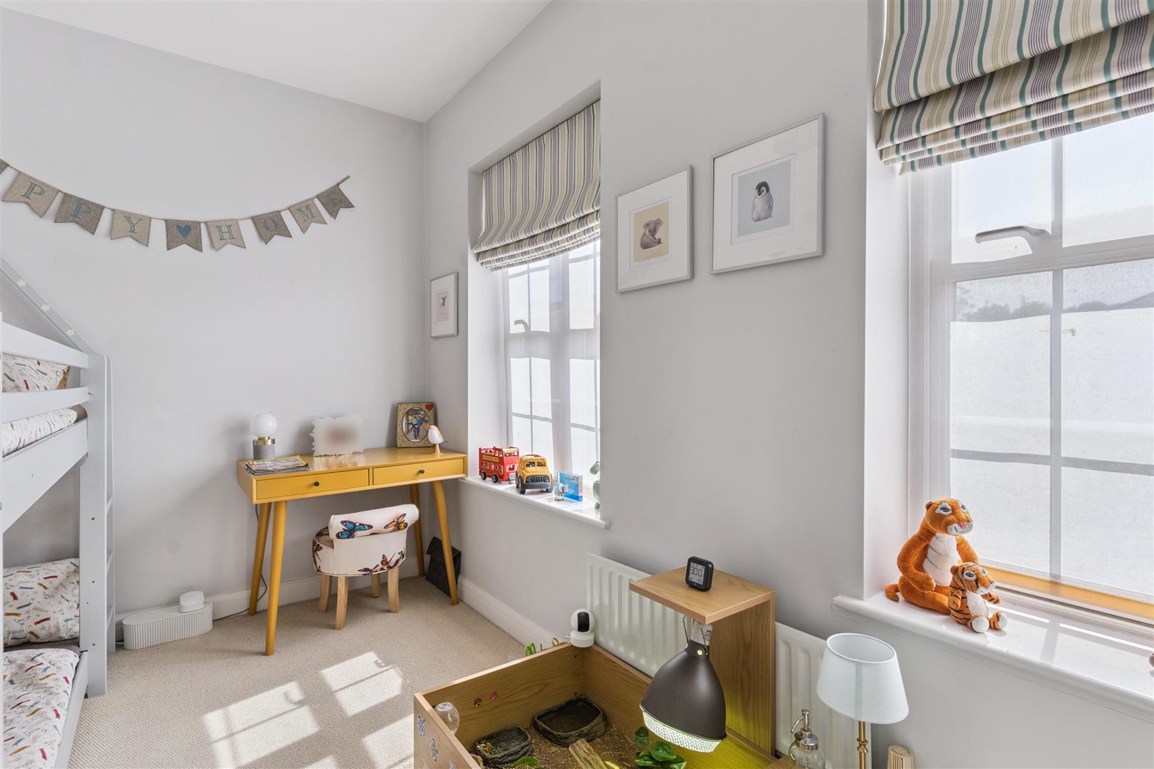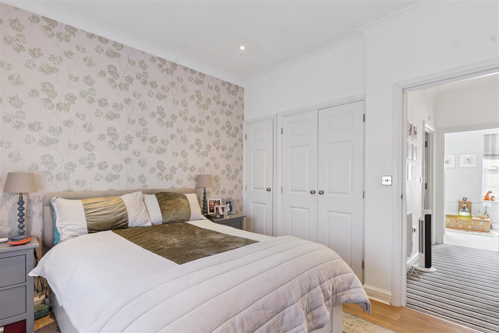 Upstairs, the principal bedroom is a true retreat, luxuriously appointed with built-in wardrobes and a contemporary en-suite shower room. A generous second bedroom and a stylish main bathroom complete this level.