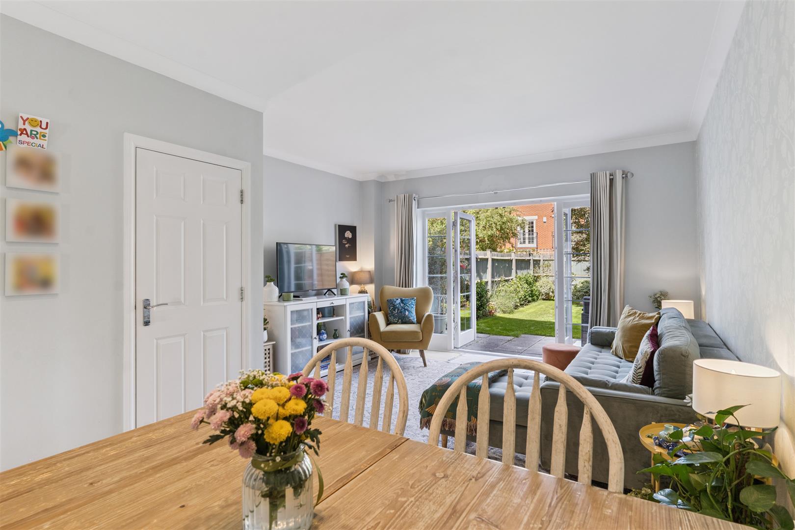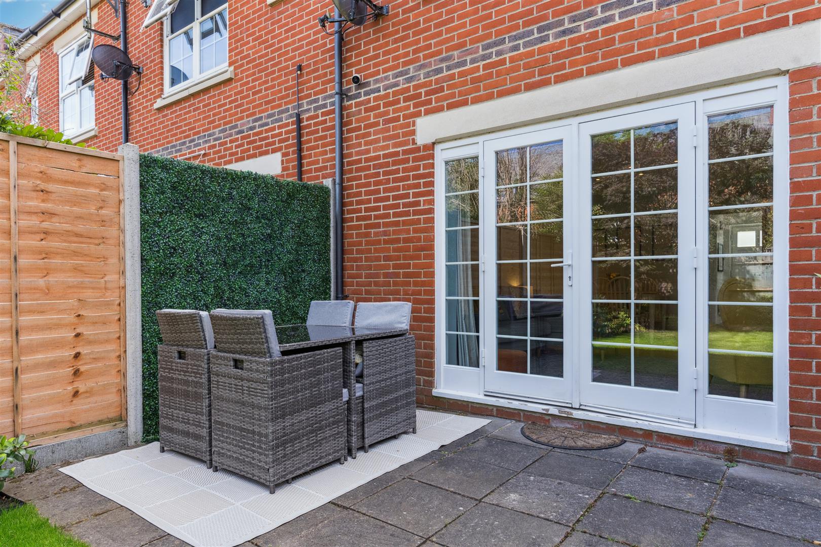 The ground floor features a sleek, fully fitted modern kitchen, a convenient cloakroom, and an expansive lounge-diner designed for both relaxation and entertaining. French doors open seamlessly onto a meticulously landscaped rear garden, complete with a patio area, lush lawn, timber shed, and gated side access - a private sanctuary for outdoor enjoyment.