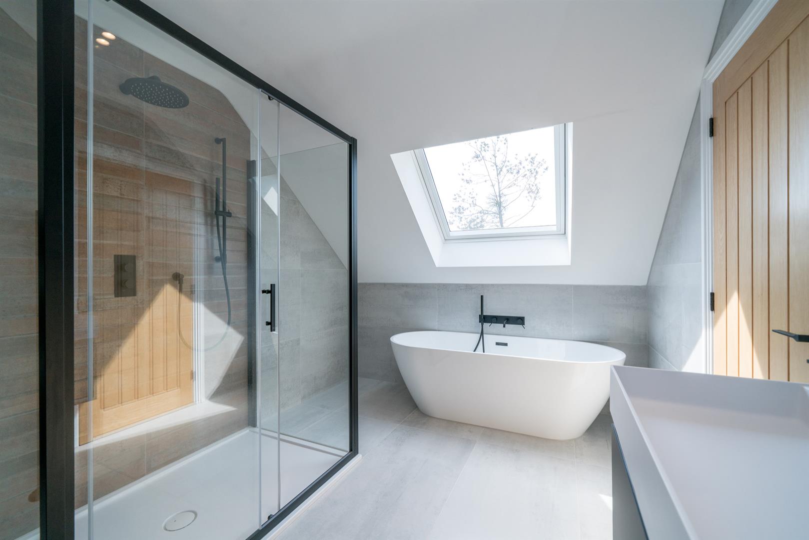The first floor features a large galleried landing, leading to four well-proportioned bedrooms, two of which have en-suite bathrooms, along with a spacious family bathroom. The upper floor is dedicated to a complete principal suite, featuring an en-suite dressing room with Velux windows offering countryside views, as well as a large bathroom with a shower, bath, and double sink.