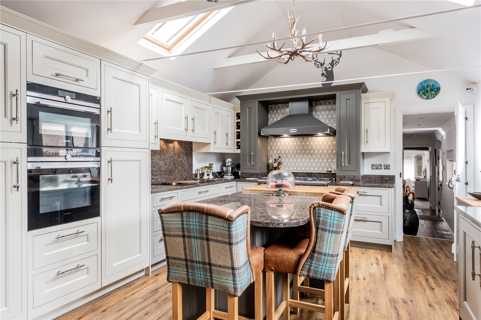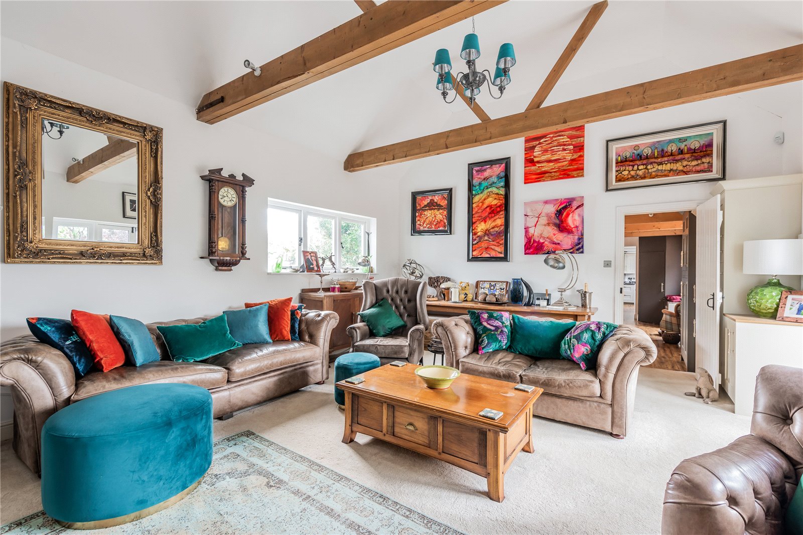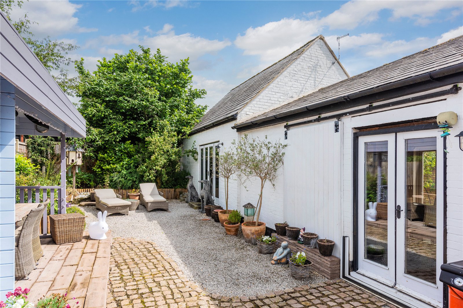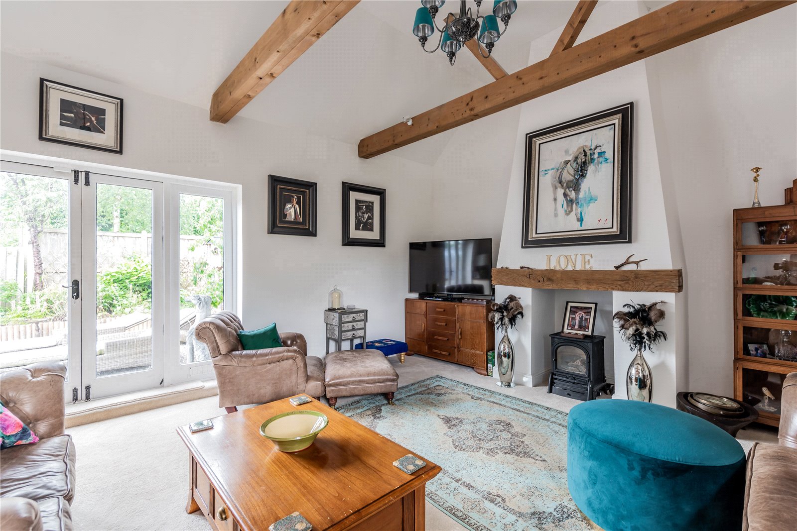 The kitchen has recently been refitted with luxurious granite worksurfaces, high specification built-in/integral appliances, island and a vaulted ceiling with exposed beams which continue into the spacious living dining room with doors to both a private walled garden and landscaped garden. The sitting room also has a vaulted ceiling along with a feature fireplace. The principal bedroom is served by a beautifully fitted en-suite and there are two further double bedrooms and family bathroom.