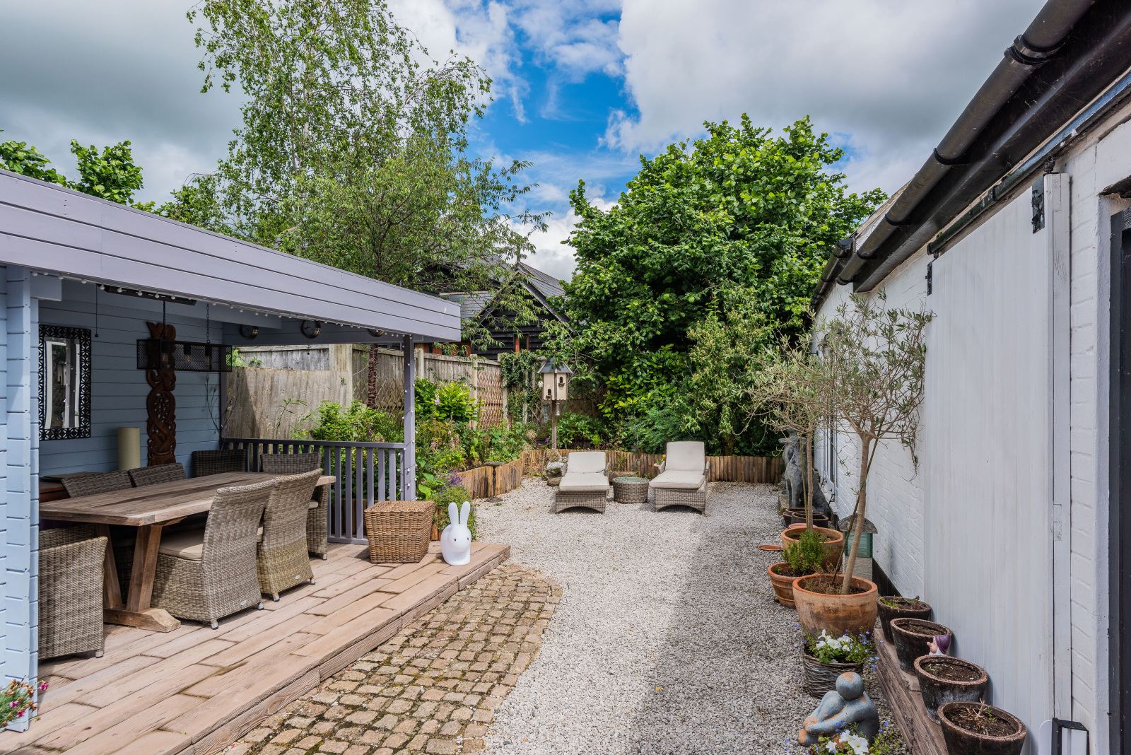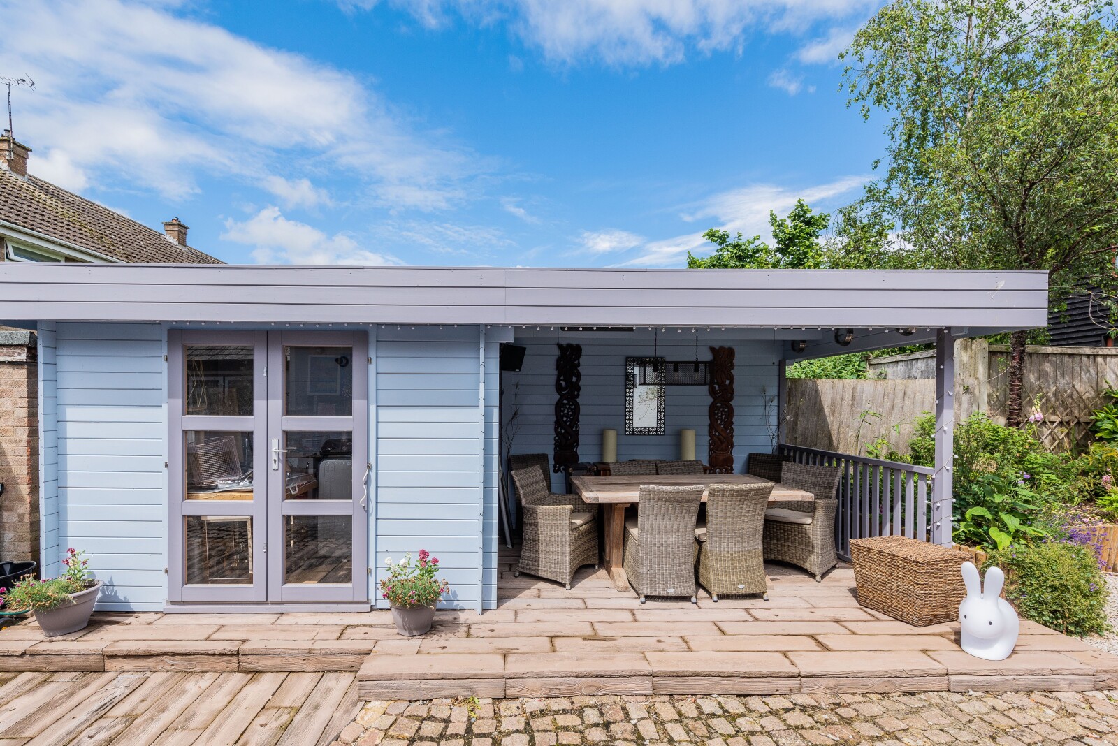 Double doors from the reception rooms provides an easy flow into the private garden with a covered and heated dining area adjoining the studio plus a garden store/utility room. There is also ample off road parking.