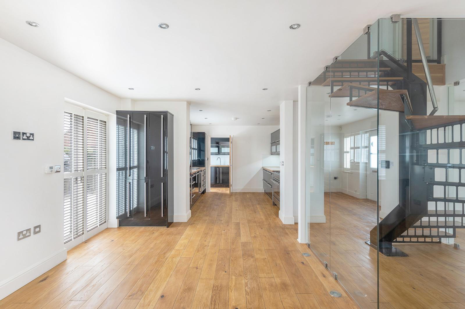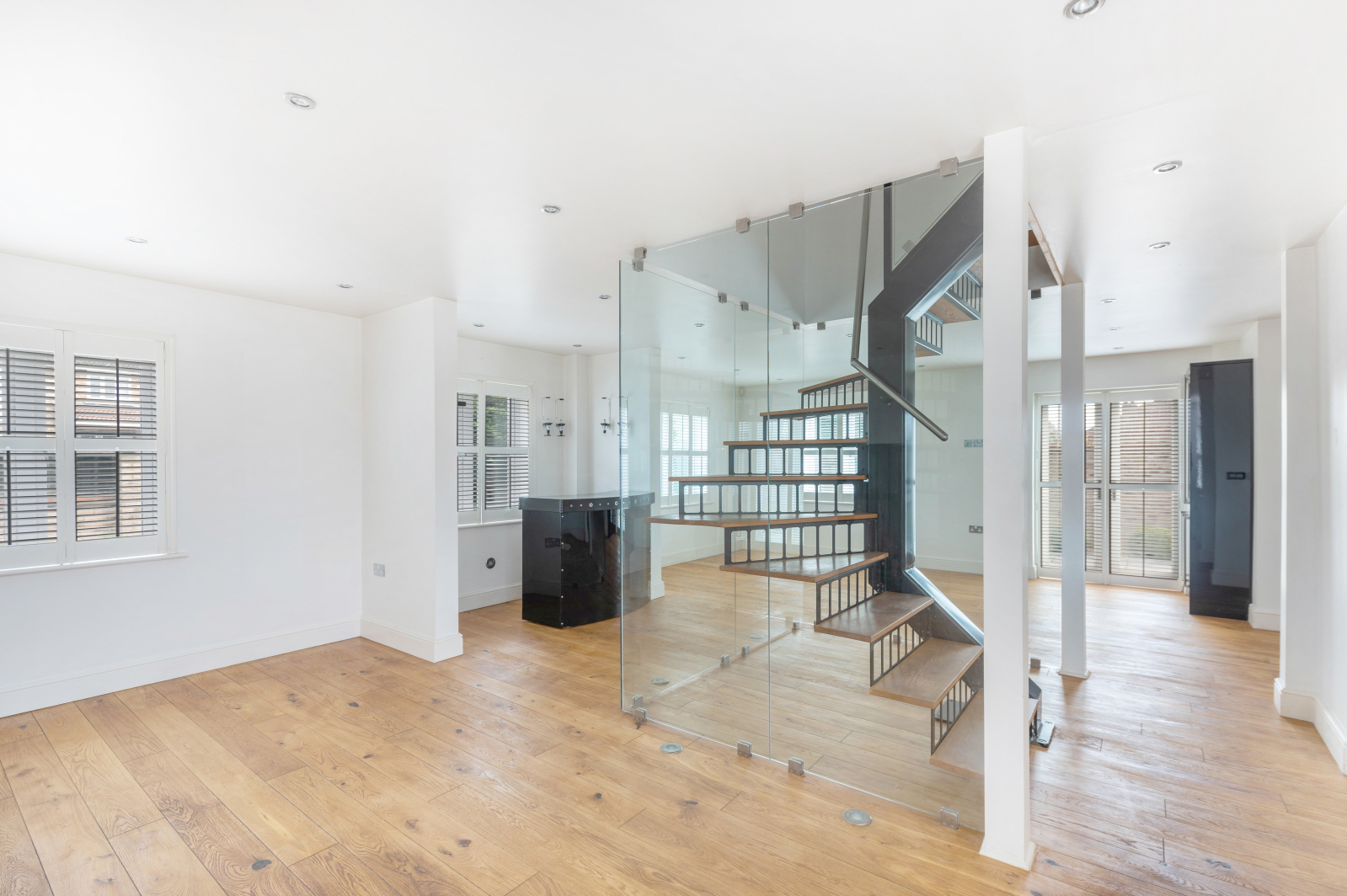 Enclosed by a brick wall providing exceptional privacy, this modern home is accessed via double powered wrought iron gates that open onto a generous driveway and garage. At the centre of this unique property is an open-plan living dining area with a bespoke glass-enclosed staircase, doors to the garden, and a wood-burning stove. The luxury kitchen with solid woodwork surfaces is also part of the open-plan ground floor, making it perfect for entertaining and daily living. A separate utility room and cloakroom complete the ground floor. Upstairs, a large landing would make an ideal space to work from home. The principal bedroom suite boasts a dressing room and en suite. The second bedroom also benefits from an en suite, while the two remaining bedrooms share a family bathroom. The deceptively large garden wraps around the side and rear of the property, providing a spacious patio and lawn.