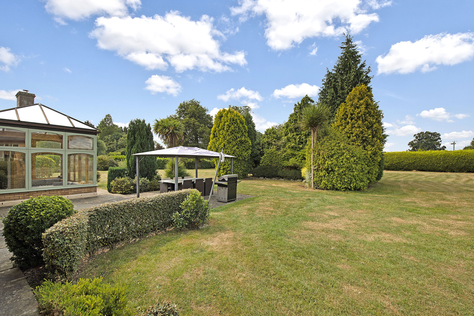"We adore our gardens, which include a paddock area that the previous owners likely used for keeping animals. Now, it's a sanctuary for wildlife, and our two dogs love to roam through the long grass. There's a magnificent oak tree with a tree preservation order, adding to the charm and character of the property. The garden is expansive, providing a safe and delightful space for both dogs and children, and it keeps us happily busy with its upkeep. The sunsets and sunrises here are truly breath-taking."