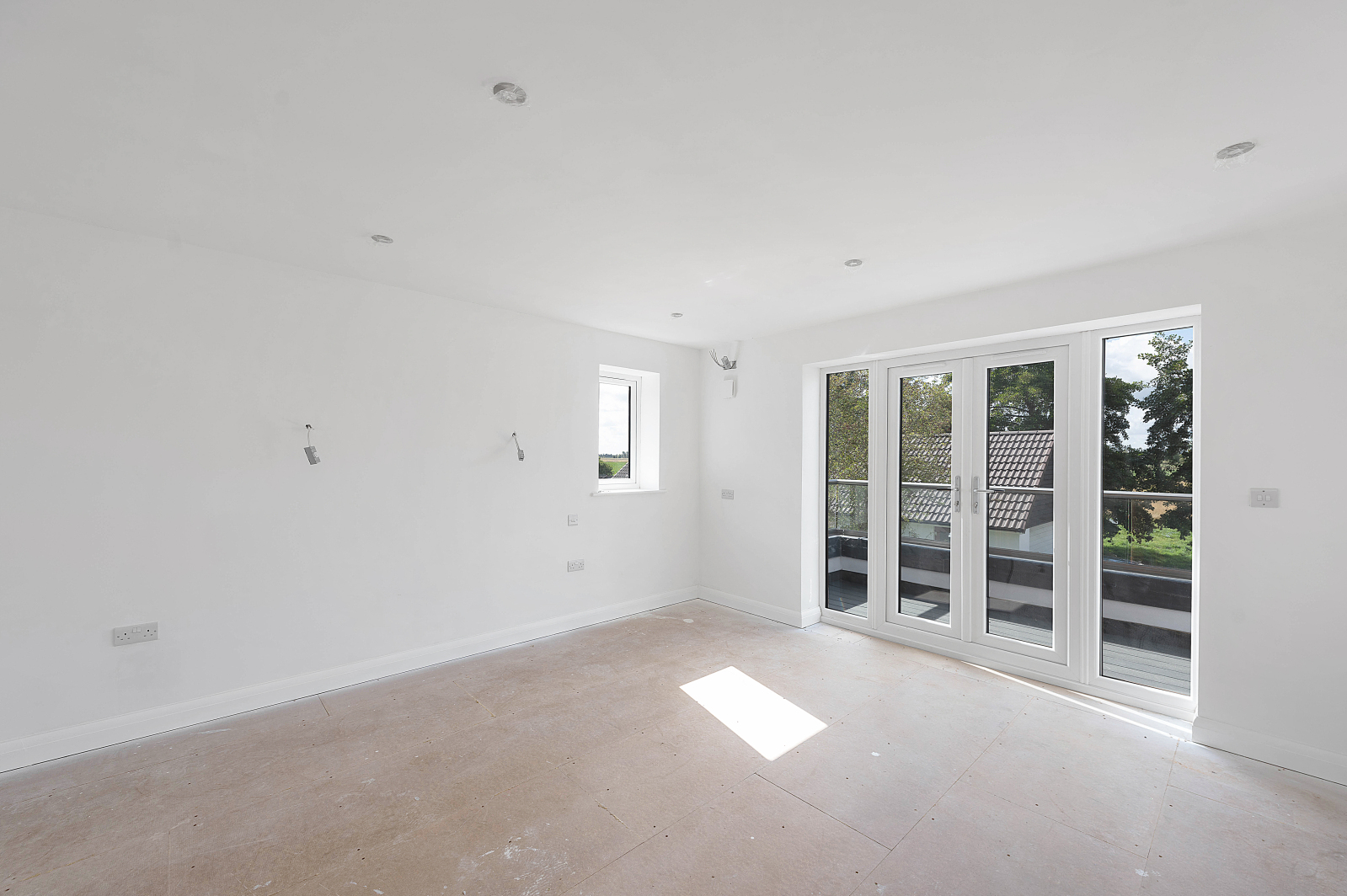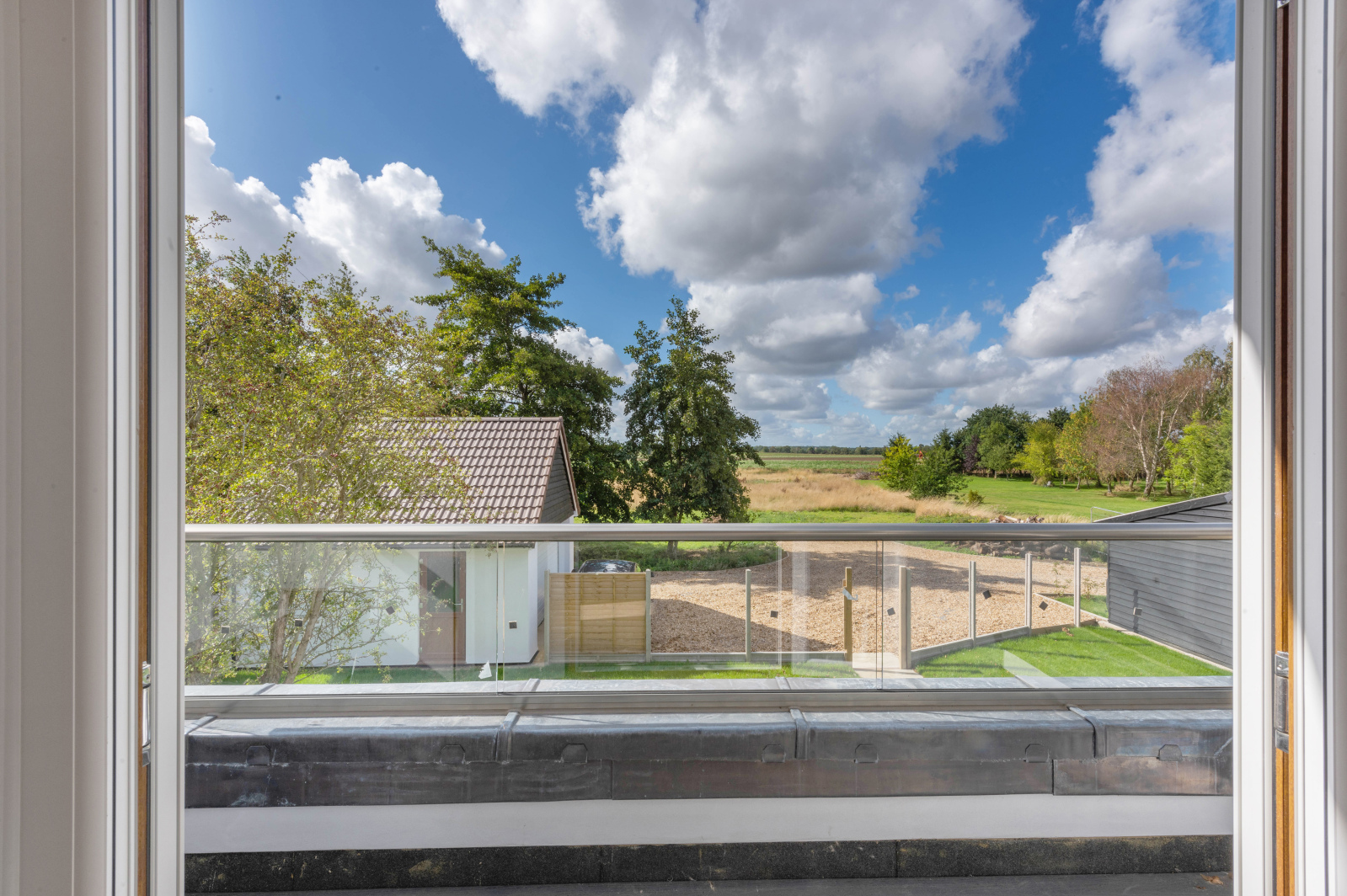 Upstairs, every bedroom enjoys an open outlook, giving a wonderful sense of space. The principal suite feels indulgent, with a dressing area, an en suite featuring both a freestanding bath and walk-in shower, and a private balcony, perfect for a slow Sunday coffee overlooking the countryside. Three further bedrooms and a family bathroom ensure comfort for family and guests alike.