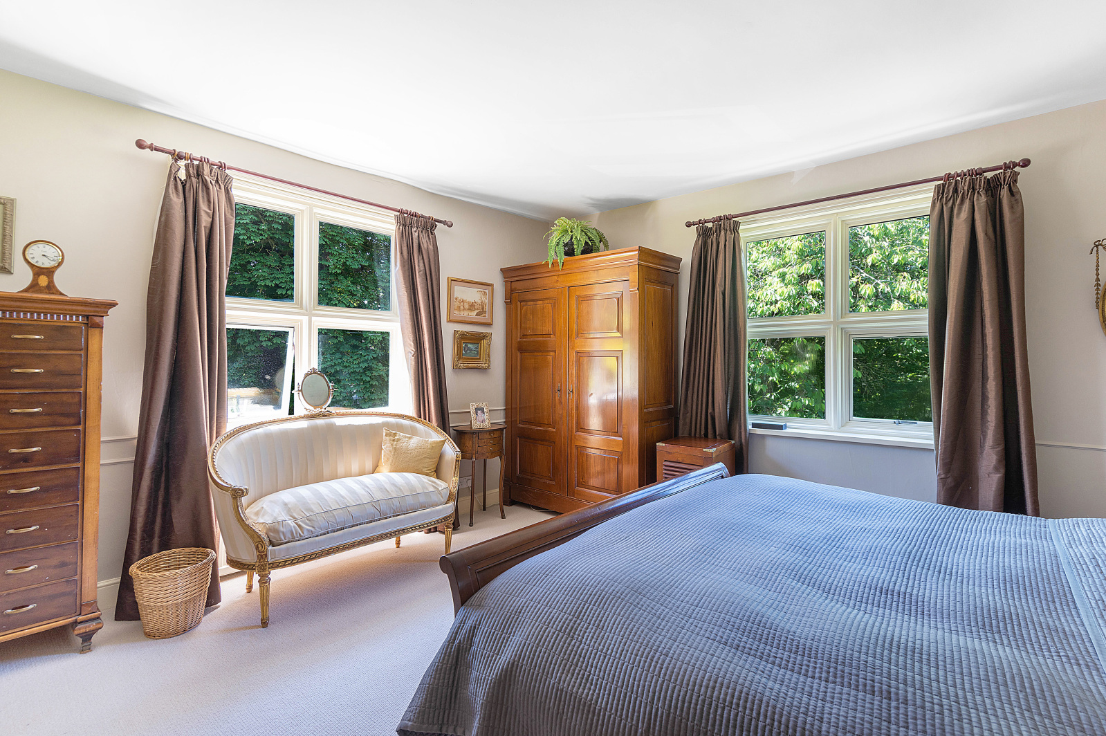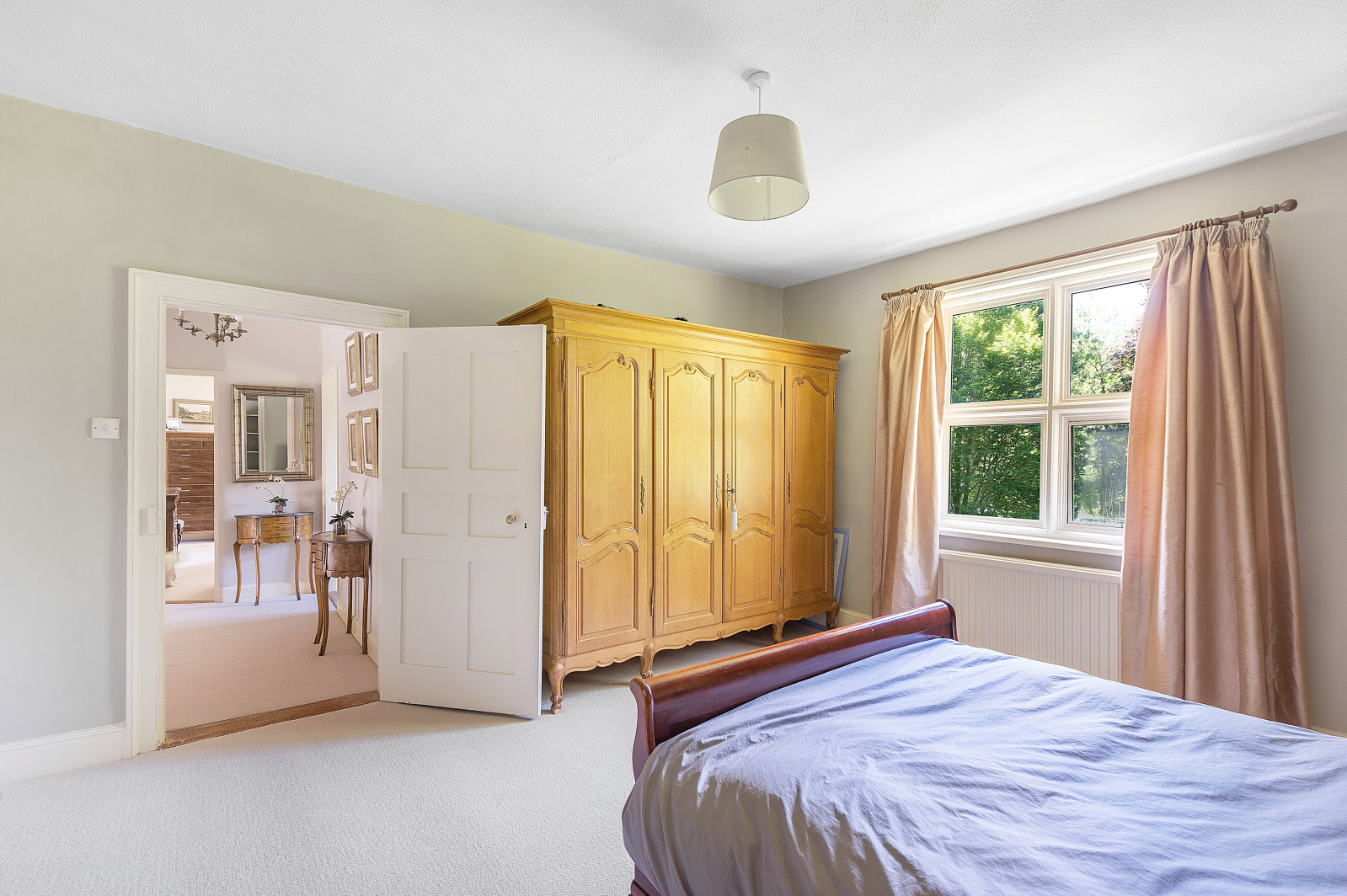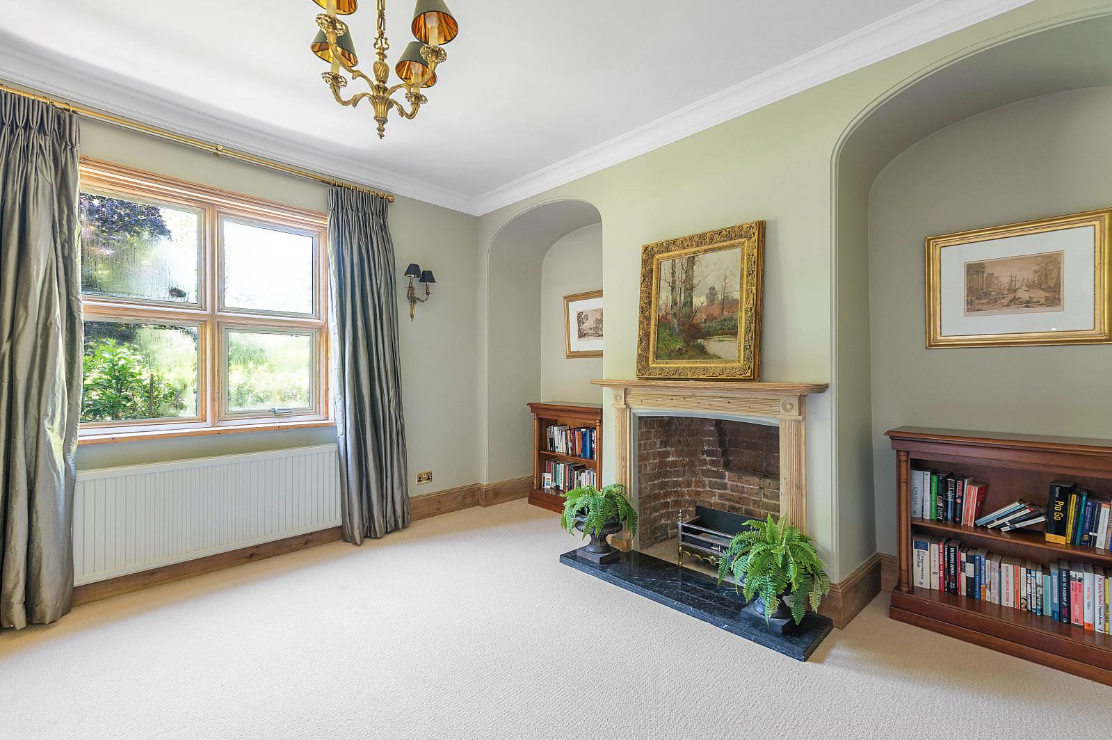 A split-level landing opens onto the first floor with the principal bedroom boasting an en suite, while the remaining bedrooms share a recently refitted bathroom. The layout of bedrooms four and five is ideal for children, teenagers, and guests, as bedroom five is accessed by a staircase from bedroom four, creating a suite where a dressing room or reception room could accompany the bedroom.