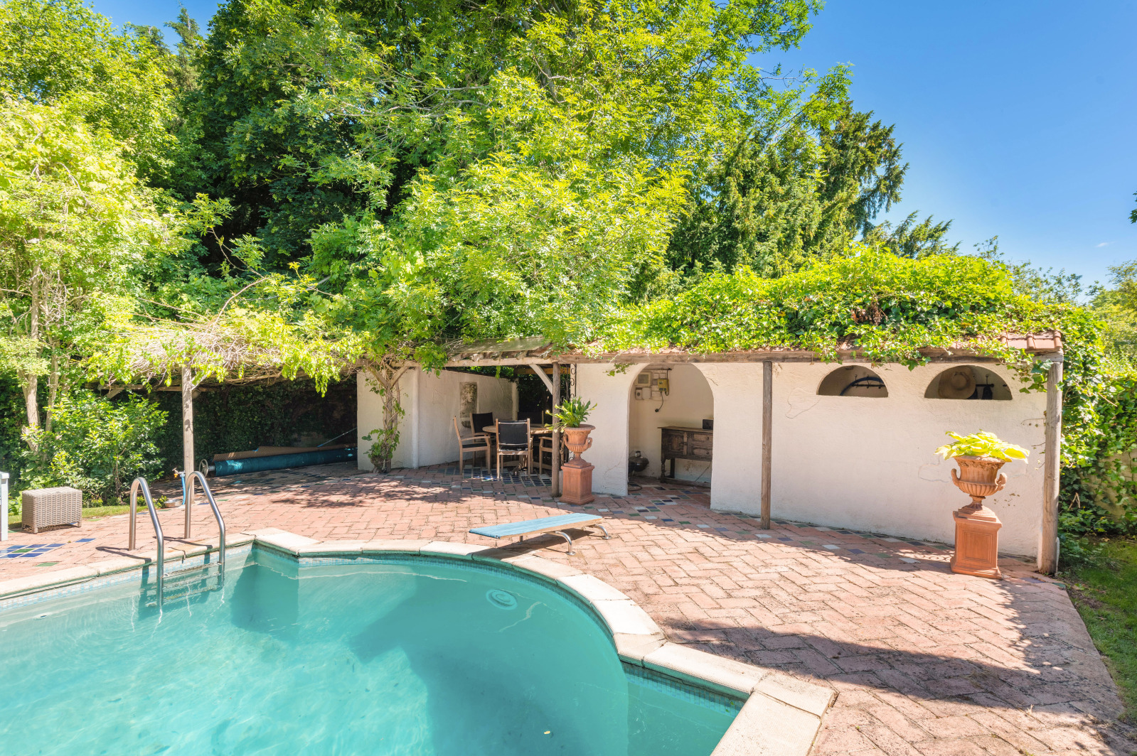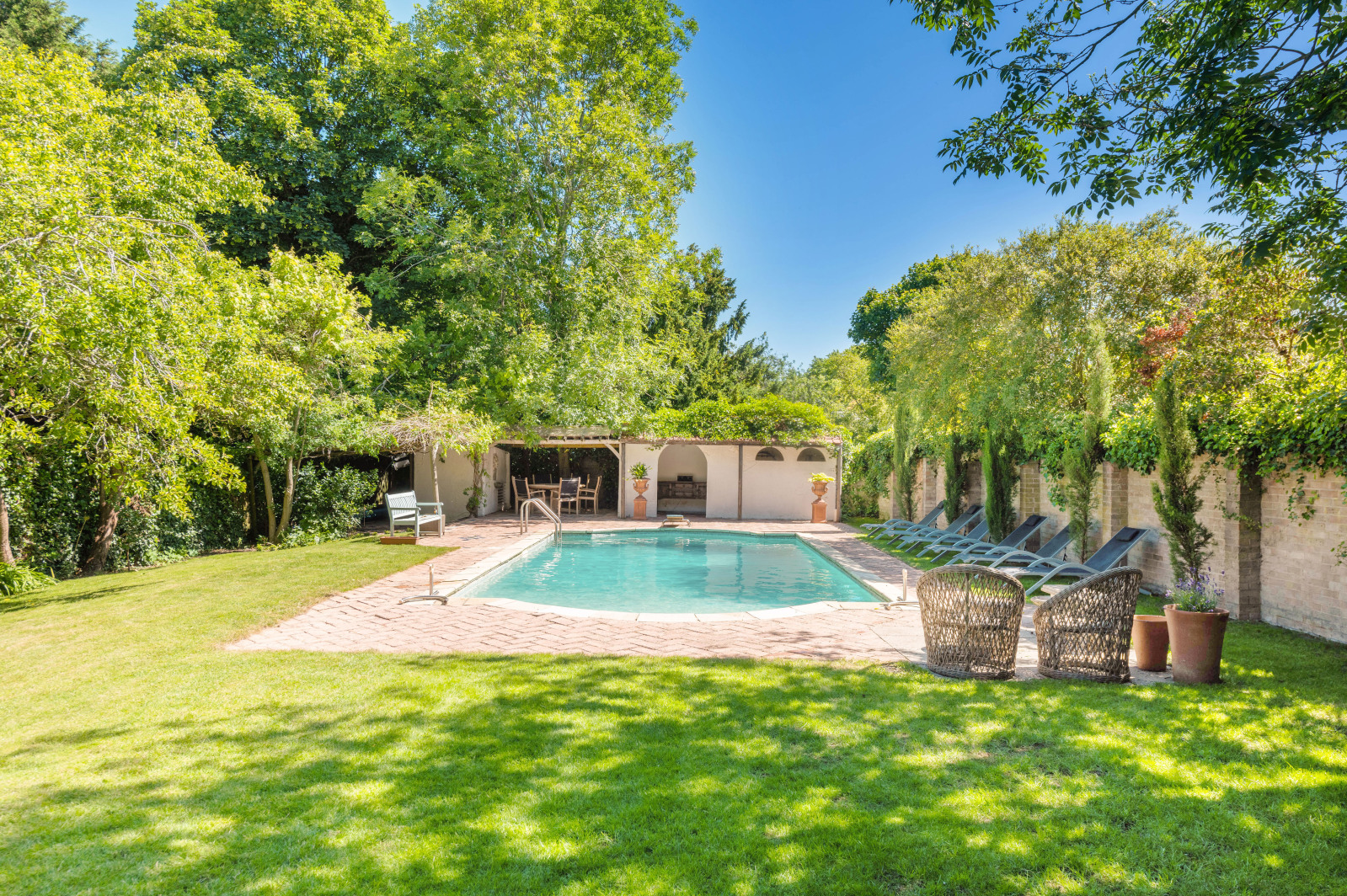 Another feature that drew us to the property was the garden; its hard to believe that a property in the middle of a village could have a garden quite so spacious and private. During our time here weve planted hedging to enhance that feeling of privacy and weve created lots of different areas for sitting out, relaxing and alfresco entertaining. We also have an outdoor swimming pool. We hadnt initially been looking for a property with a pool, but weve relished having one. When the weather is hot, we can lie by it all day long or have an impromptu pool party
