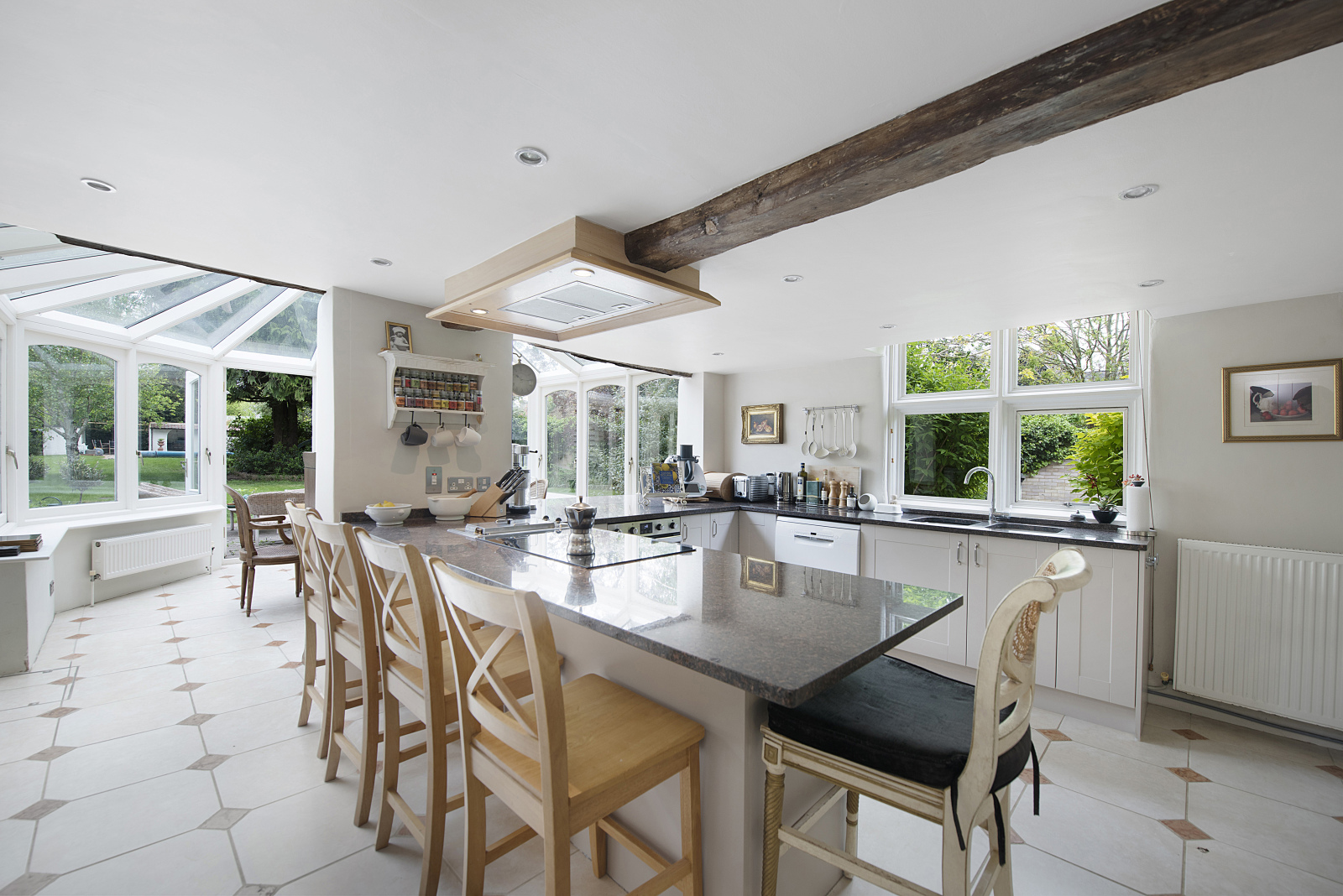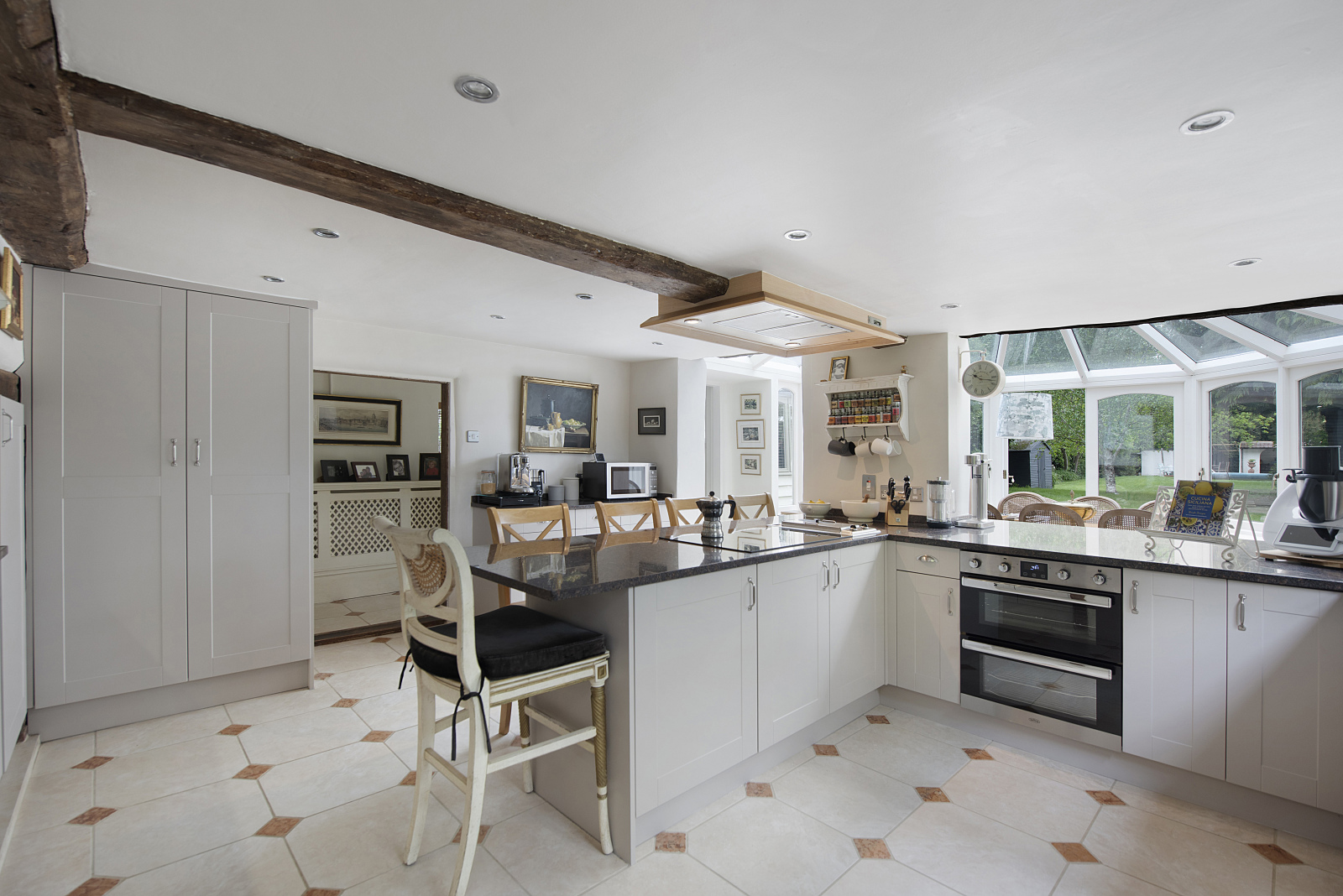 The thing that immediately grabbed me was the look of the house. Ive always loved Georgian architecture and this is an extremely attractive example, both inside and out. Its really spacious and bright, and the main reception rooms in particular have the grand proportions so typical of the era. The house also retains some really gorgeous original features the wood panelling in the entrance hall blew me away when we first came to view the property! Its a very handsome and hugely characterful house, but its also a property thats really comfortable for modern living, and what I particularly like is the fact that its perfect in both summer and winter. When the weather is warm we tend to gravitate to the reception room in the barn, which opens out onto the patio and garden beyond; then in winter the whole house takes on a really warm and cosy atmosphere, particularly when the open fires are roaring away.