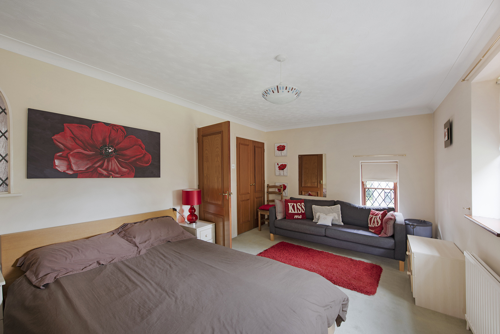 Upstairs, the accommodation is equally impressive. The L-shaped principal bedroom features a dressing area and en suite shower room, creating a private retreat. Four further bedrooms, each bright and well-proportioned, share a family bathroom, ensuring plenty of space for a growing family or guests.