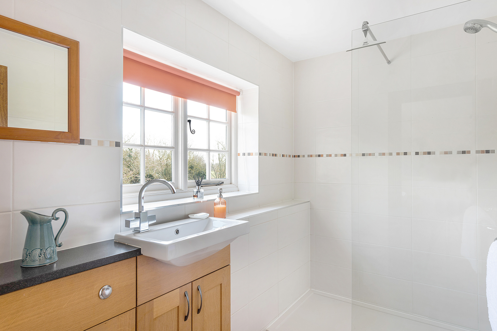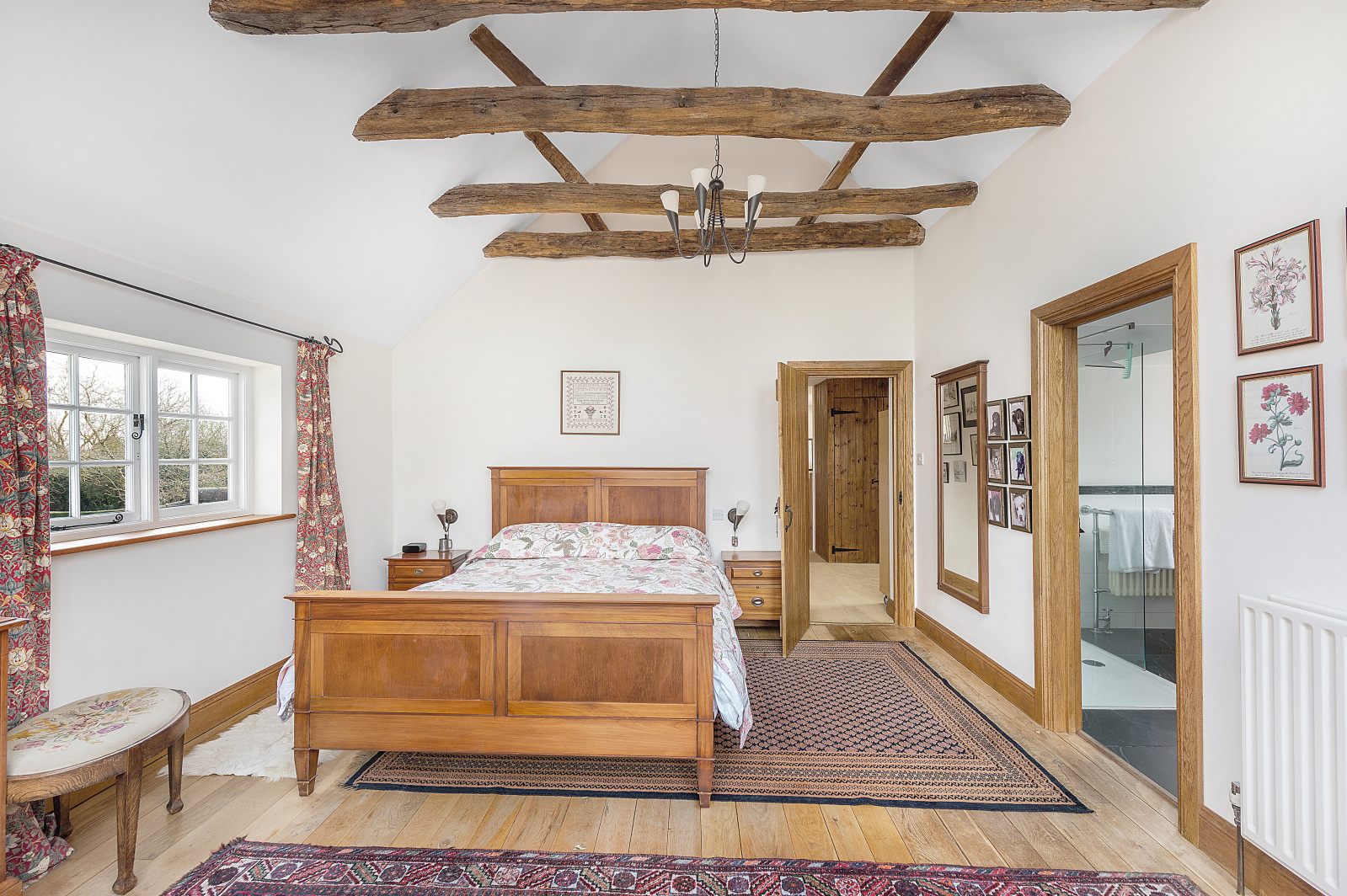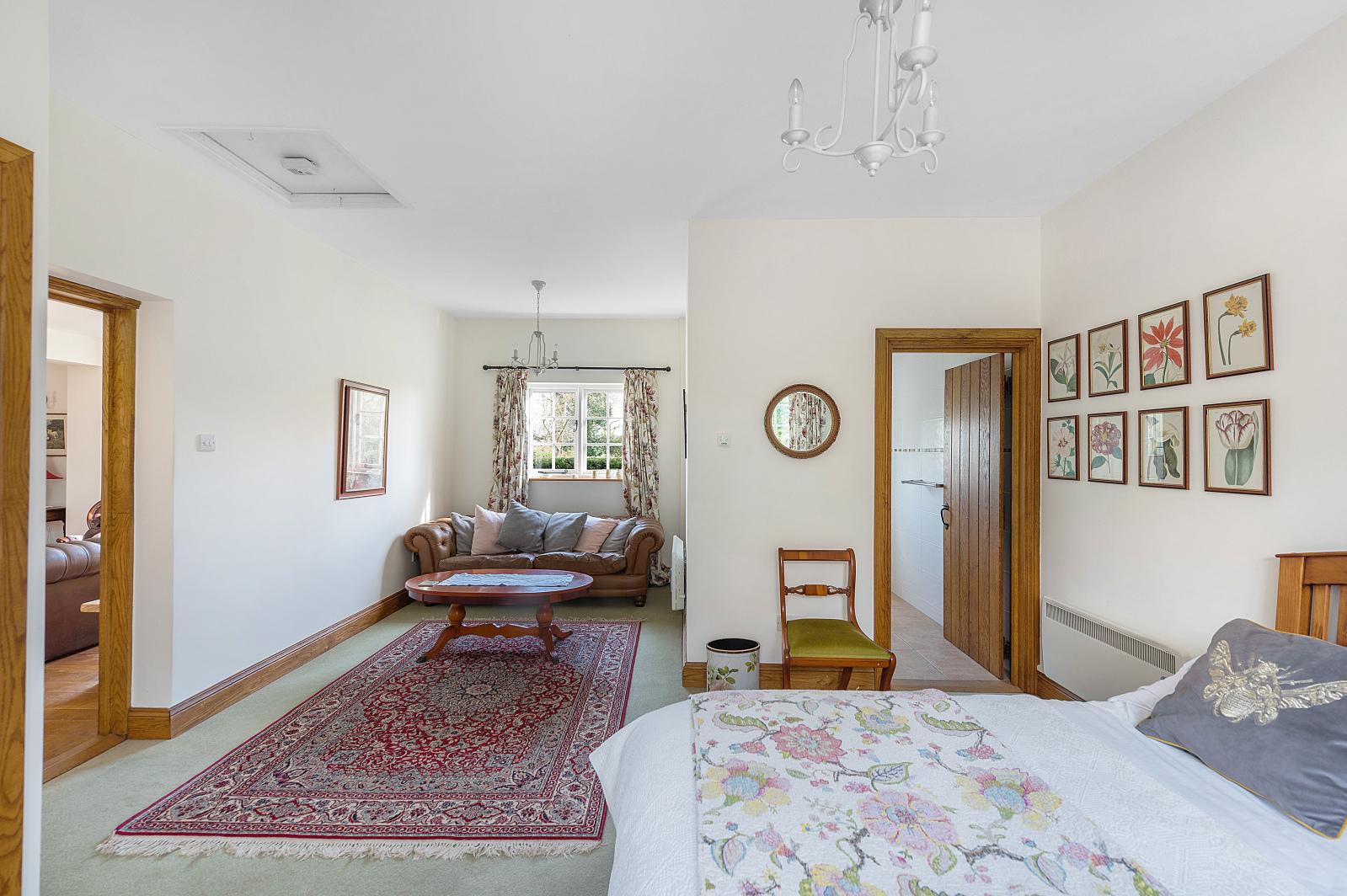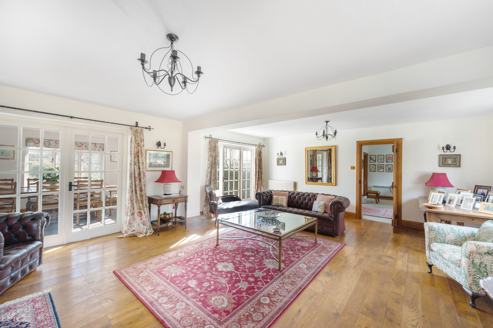 The ground floor boasts an open-plan kitchen and dining room, with French doors that open directly onto the garden, creating a seamless flow between indoor and outdoor living. A large family room provides the perfect space for relaxation and entertaining, while a separate study offers a quiet retreat for home working. The sitting room is both cosy and spacious, adding another versatile living area. A well-equipped utility room adds practicality, and a ground-floor guest bedroom with an en suite makes an ideal space for visitors or multi-generational living.