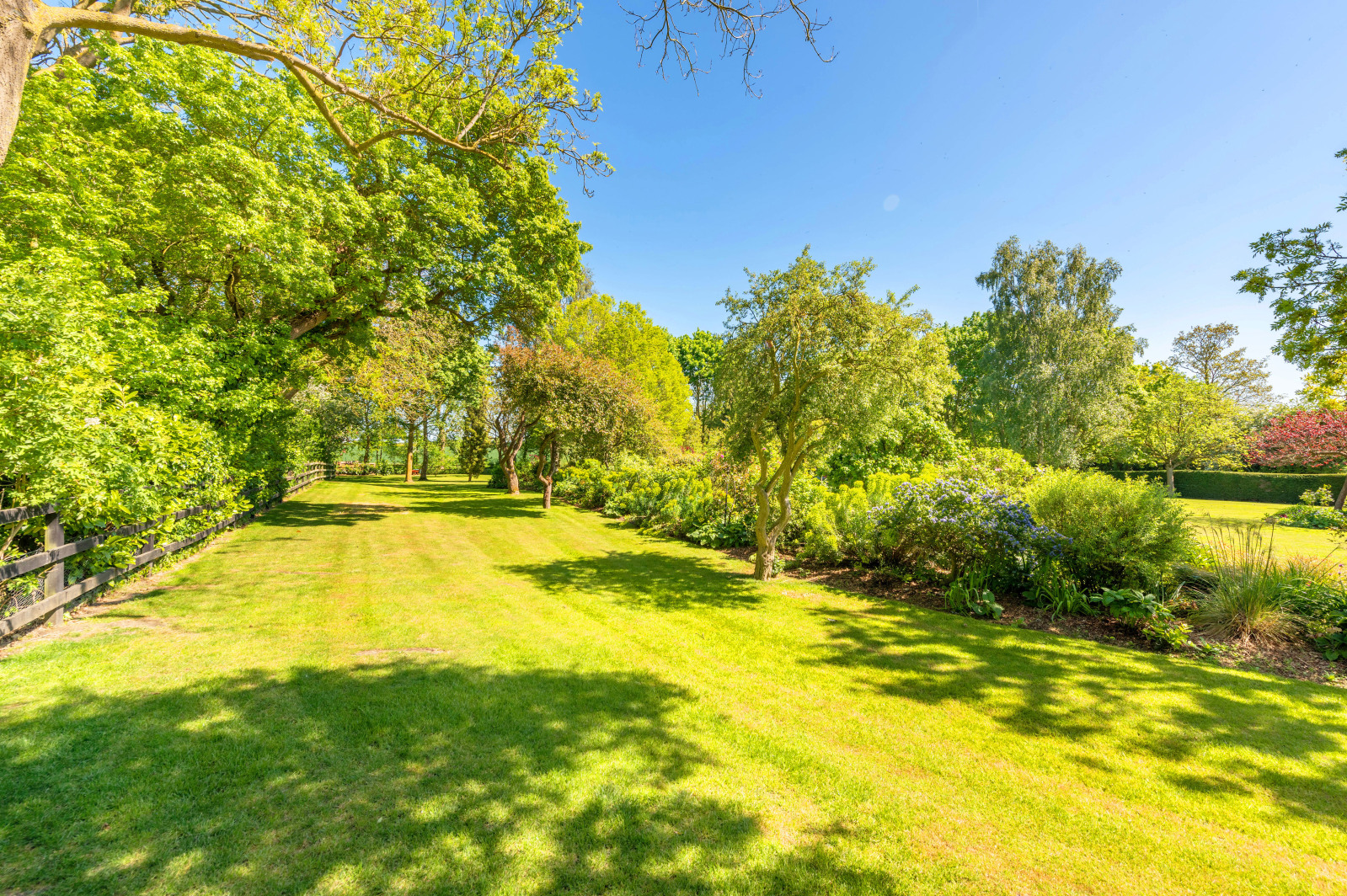 Outside, the property boasts a double garage, providing secure parking and storage. The expansive 1.25-acre gardens are beautifully landscaped with mature trees and plants, offering a tranquil and private outdoor setting.