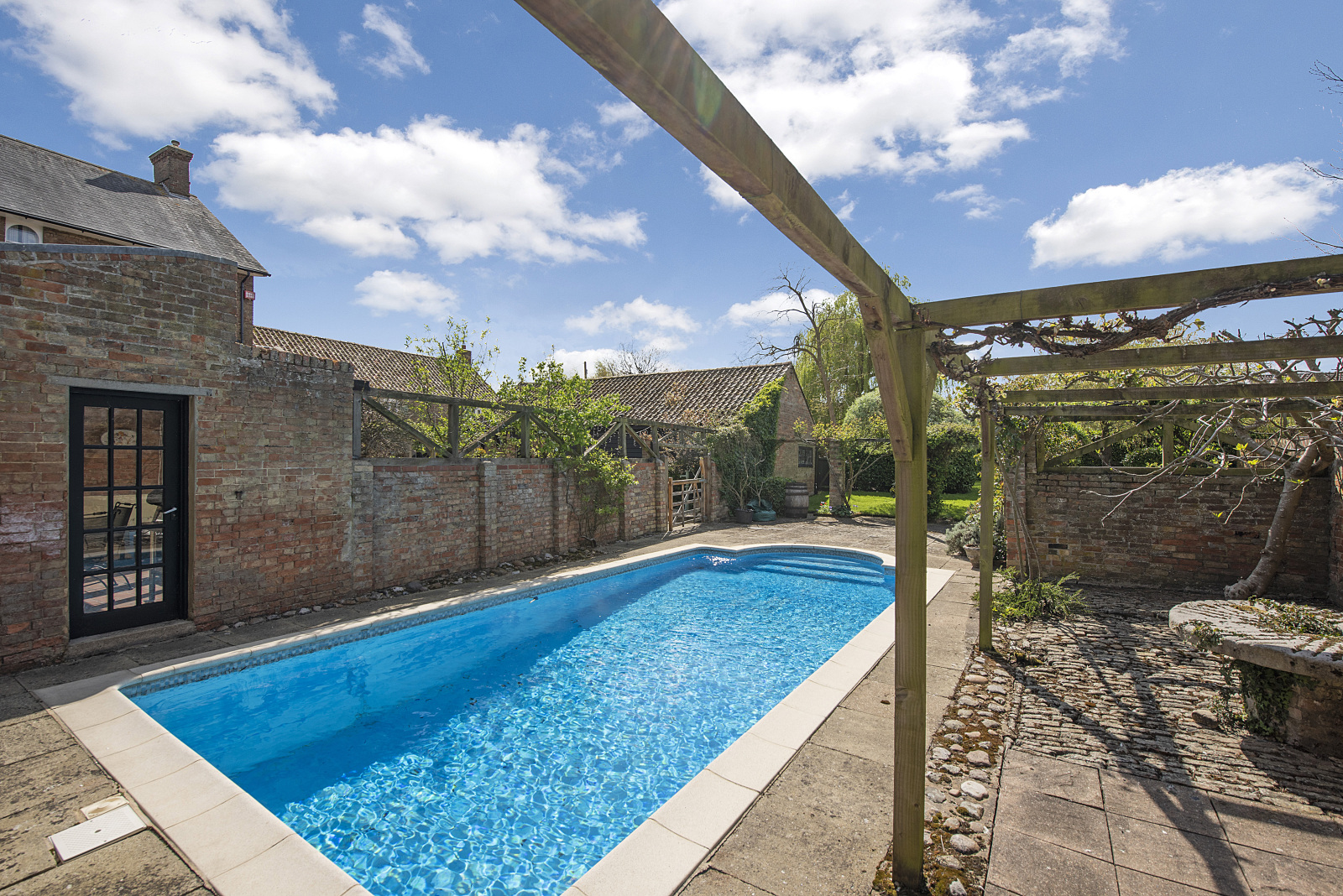 Set on a mature and well-tended plot, the grounds include a beautiful courtyard garden ideal for al-fresco dining, a swimming pool, a double carport, multiple outbuildings, and ample off-road parking.