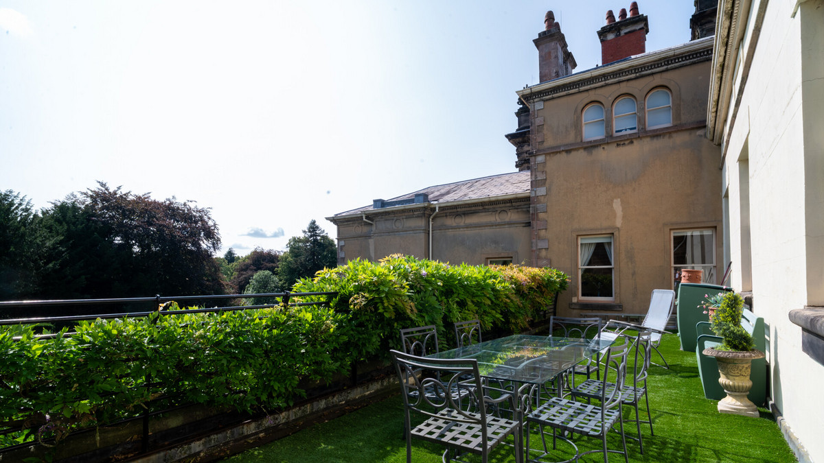 What makes this apartment truly remarkable is not only its private terrace, the only one of its kind at Biddulph Grange, but also the privilege of being immersed in such extraordinary surroundings. The terrace itself becomes a natural extension of the living space, ideal for morning coffee as the gardens wake, summer evenings with friends, or moments of solitude where the only soundtrack is birdsong.
