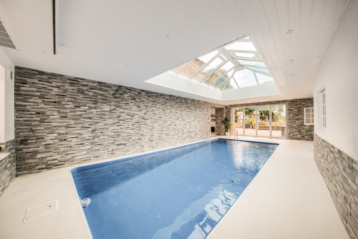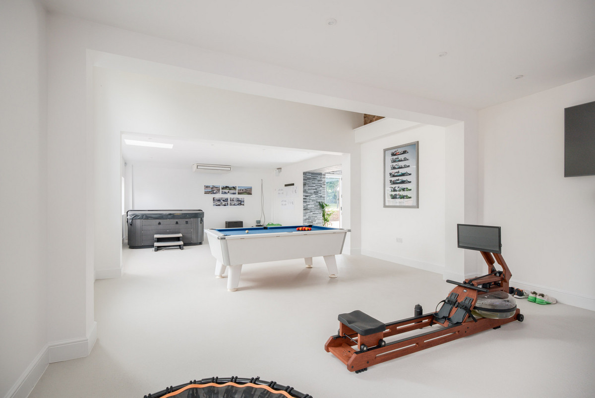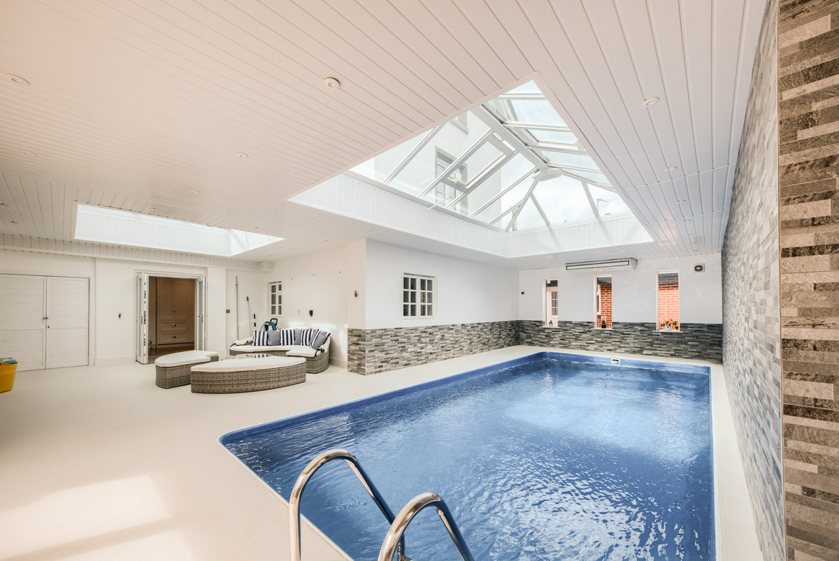 This is now a modern and economical home with PV solar panels and solar water heating installed, air source heat pump, new commercial grade boiler and cylinder, radiators, air conditioning to principal bedroom and leisure suite, underfloor heating in the bathrooms, commercial grade Wi-Fi network, HD CCTV with night vision plus a state-of-the-art soundproof Dolby Atmos cinema room and separate themed bar.