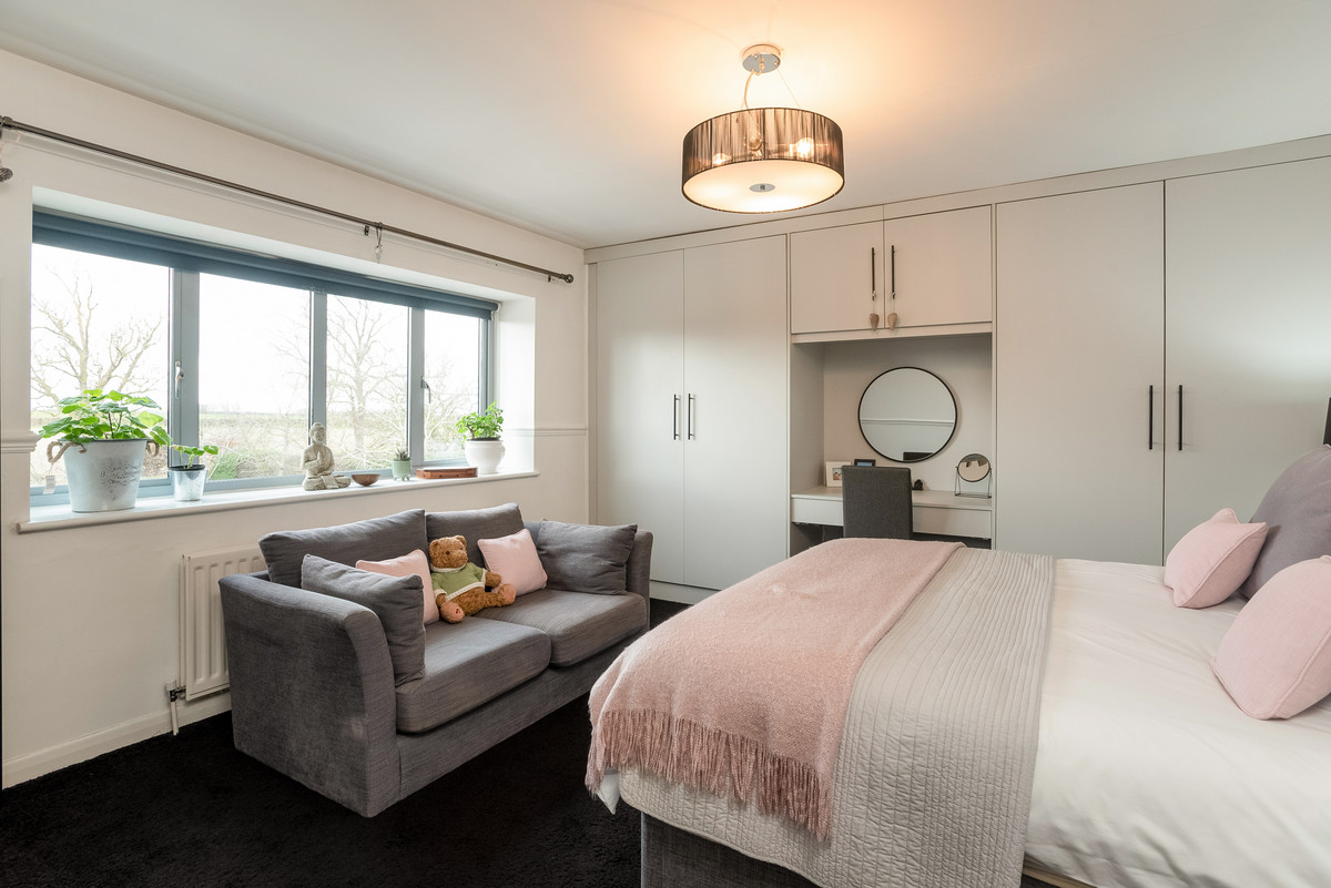 Main bedroom with Juliet balcony overlooking the countryside. Dressing room and impressive en-suite. Three further double bedrooms, one with an en-suite and a family bathroom.
