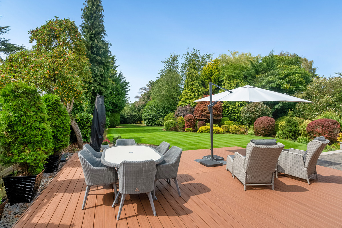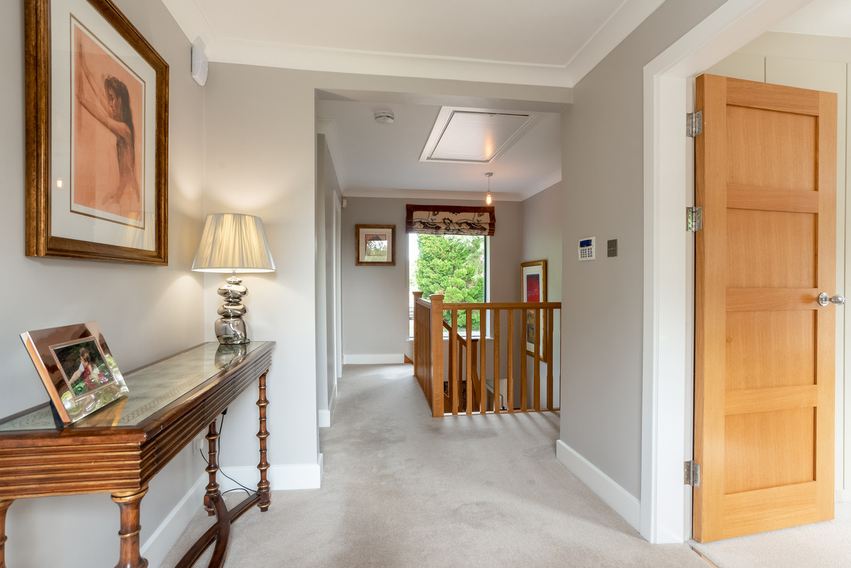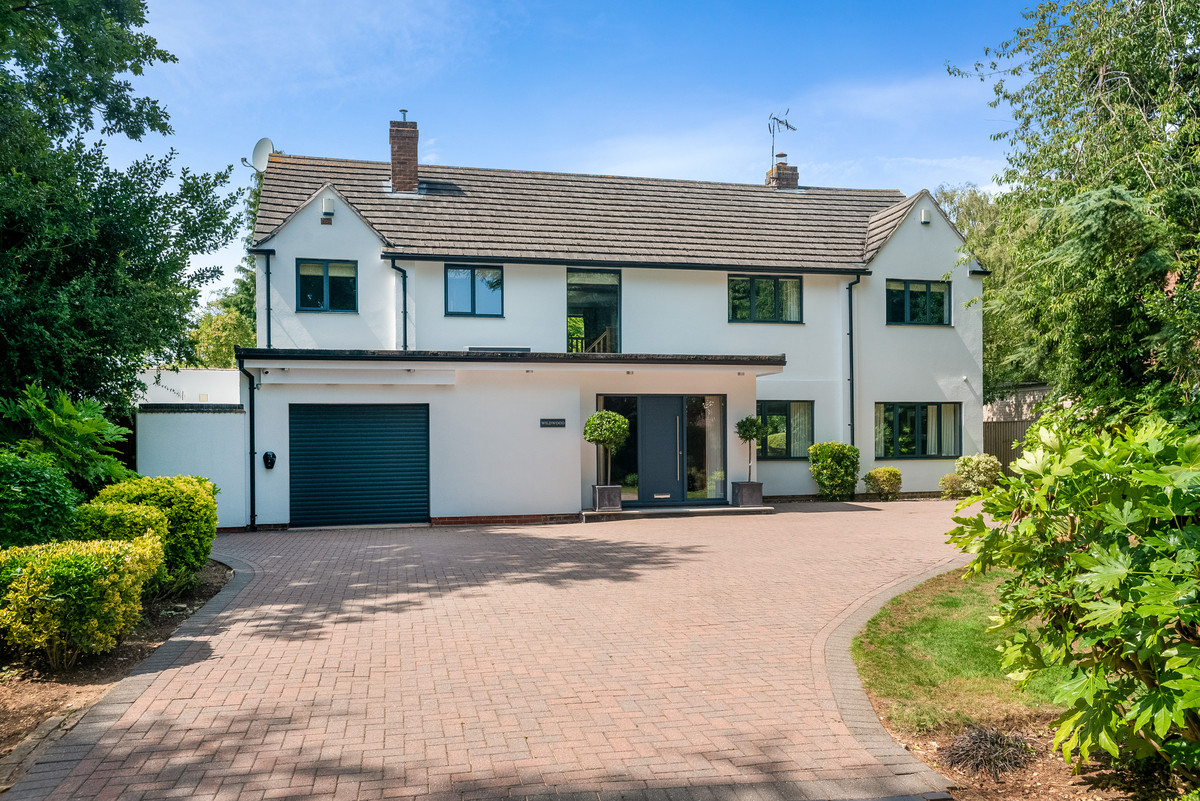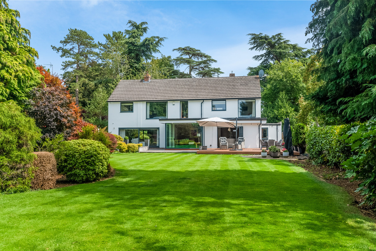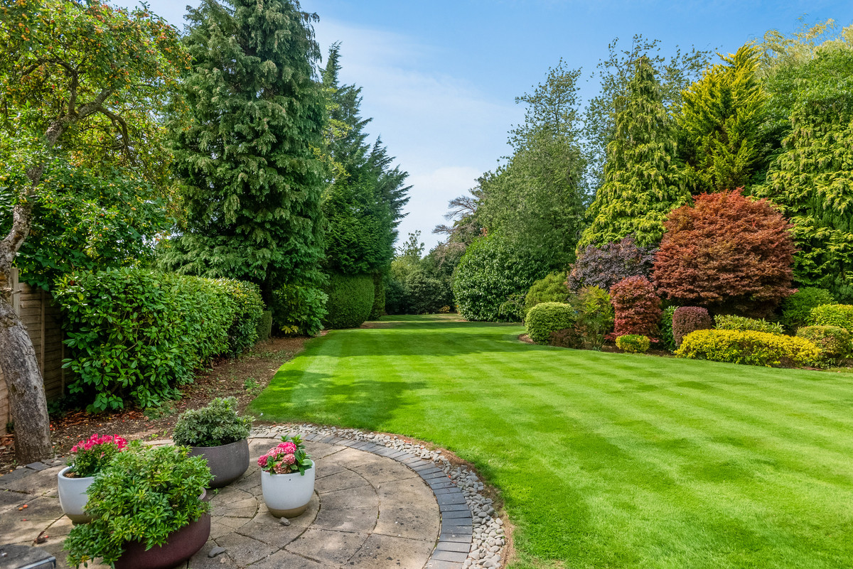 Spacious drive to garage with ample parking and EV charging point. The rear garden is mature, private, and sunny being west facing. In all 0.5 acres.