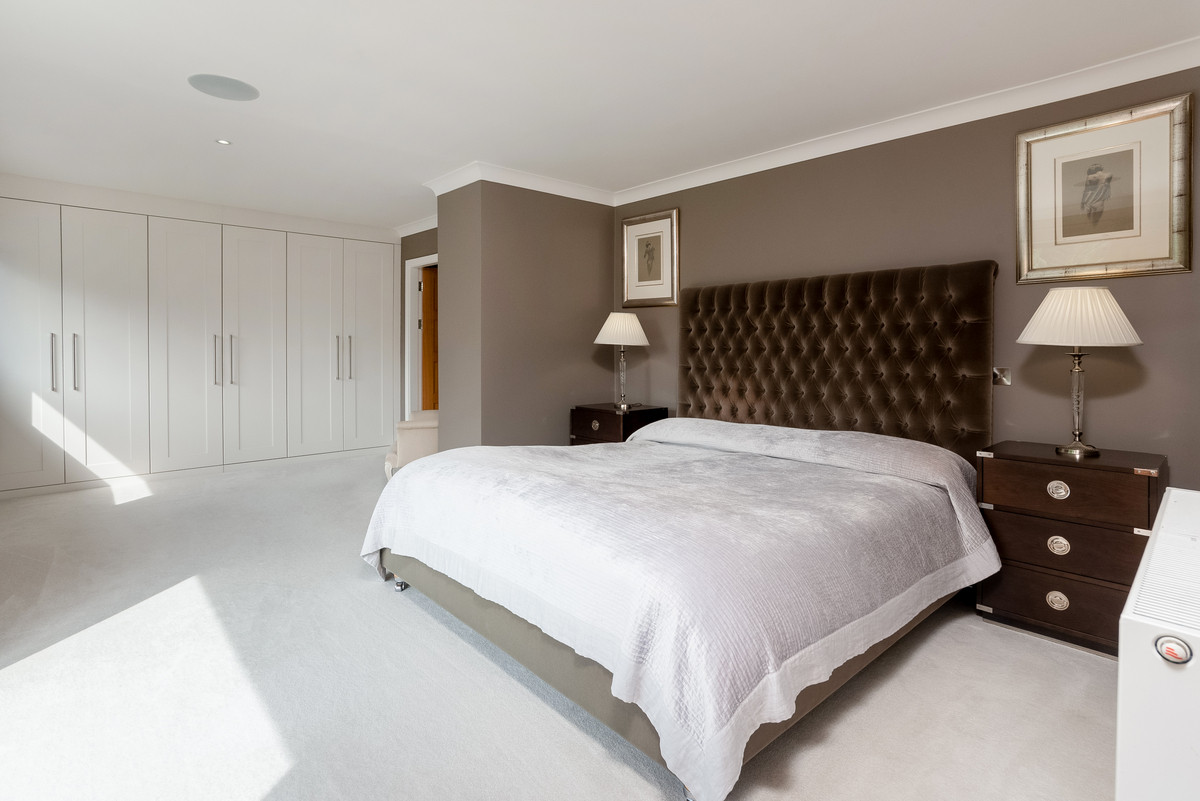 On the first floor are three double bedrooms, two with en-suite shower rooms and built-in wardrobes and a family bathroom. The main bedroom suite enjoys lovely views to the rear.