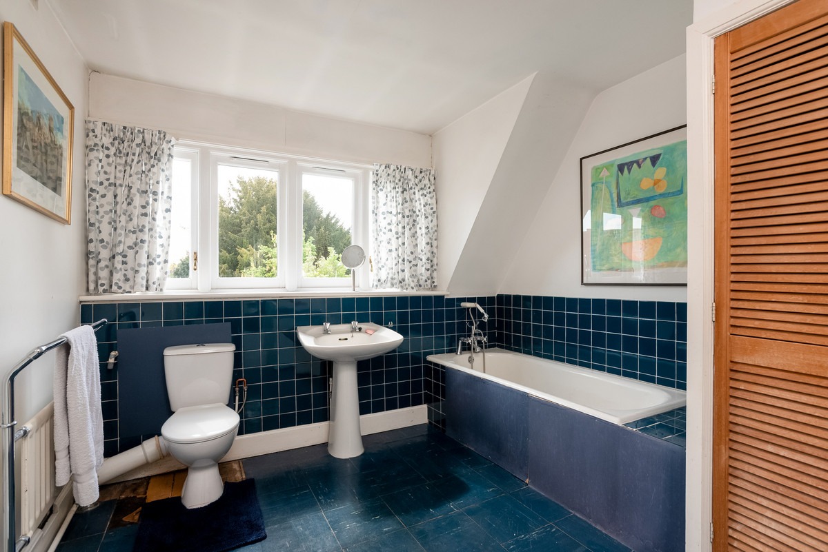 A wooden staircase leads up to a spacious landing with three large windows. There are four double bedrooms, two extremely well-proportioned rooms with built in storage, large windows and charming views of the garden and one room has a basin. The other two double rooms have ample built in storage and delightful garden views. The family bathroom has a bath, basin, W.C, airing cupboard and large storage cupboard with the washing machine in.