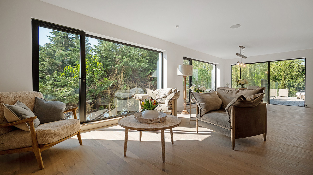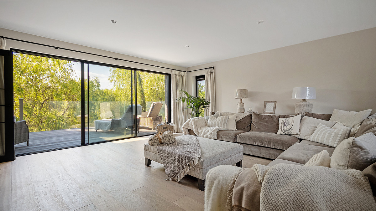 The house itself is a contemporary look and feel designed to be cohesive with modern living. A non-standard steel frame ground floor constructed property built on piles. The external is encased with chunky natural Purbeck Stonework and Douglas Fir cladding. There are many impressive features including underfloor heating with a specialised underfloor cooling system. Air source heat pump. Bluetooth ceiling speakers ground and first floor. Aluminium Glazed windows and slimline Sliders with level thresholds. The low iron (totally clear) frameless glass balustrade on the decking enables the best possible views of the river and beyond.