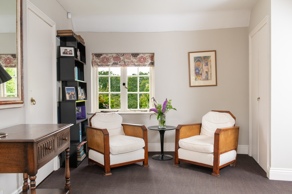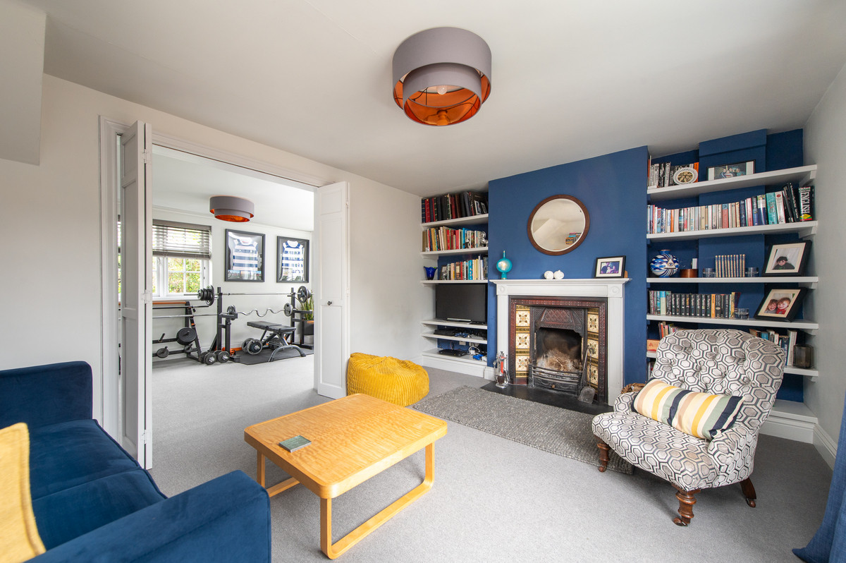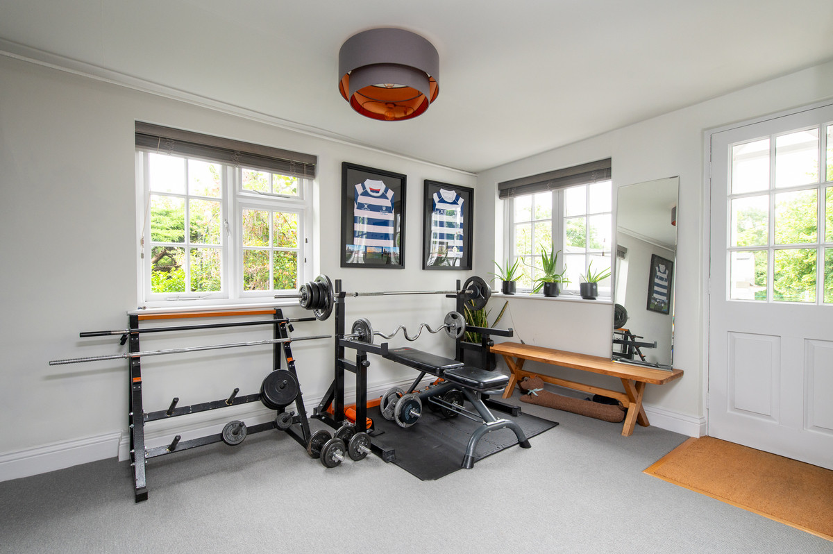 A separate sitting room has a lovely fireplace and feature window and there is also a snug room, currently used as a gym.