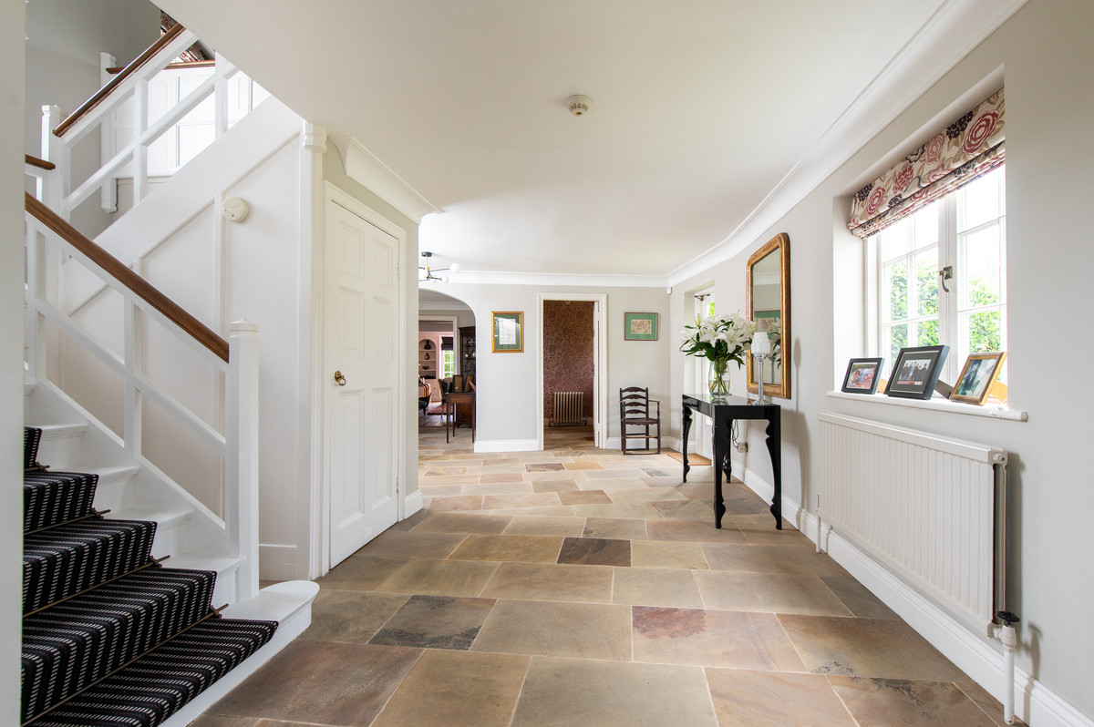 An impressive spacious reception hall greets you, with stone floor, leads to all the principal living accommodations. There is a cloakroom with coats cupboard.