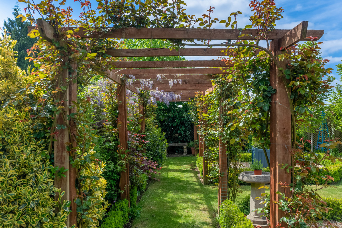 The gated drive, with ample parking, leads to the double garage. Beautifully landscaped gardens sweep around the house to the rear, which enjoys a south/west aspect. There are lovely patios, accessed from all the living accommodation, covered dining areas and a fire pit with seating. All enjoying the superb open countryside views.