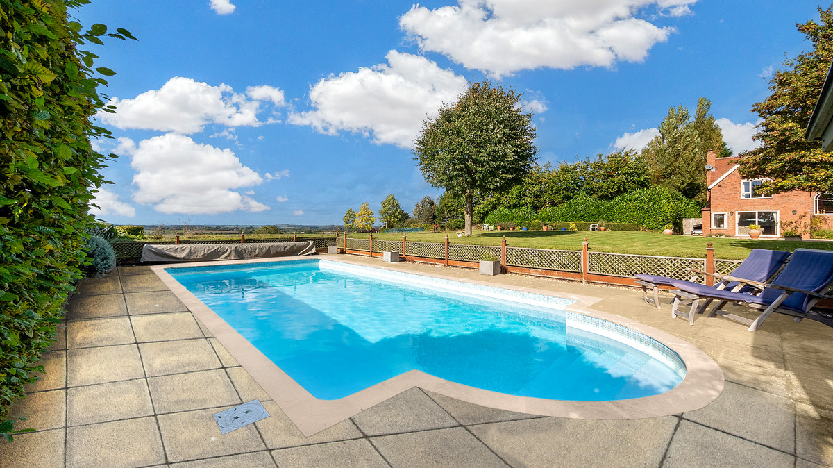 Set in approximately 11 acres of grounds with far reaching panoramic countryside views, this stunning five-bedroom family home also benefits from a one-bedroom annexe, outdoor heated pool, stables for up to five horses and a small lake.