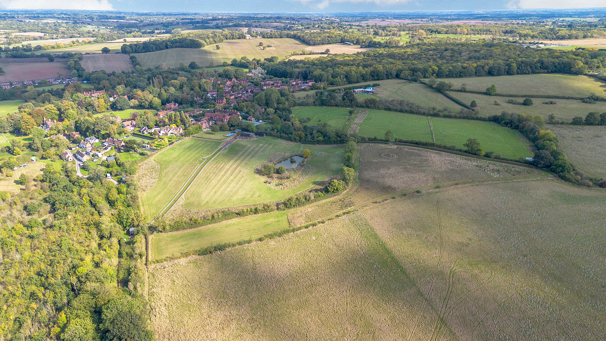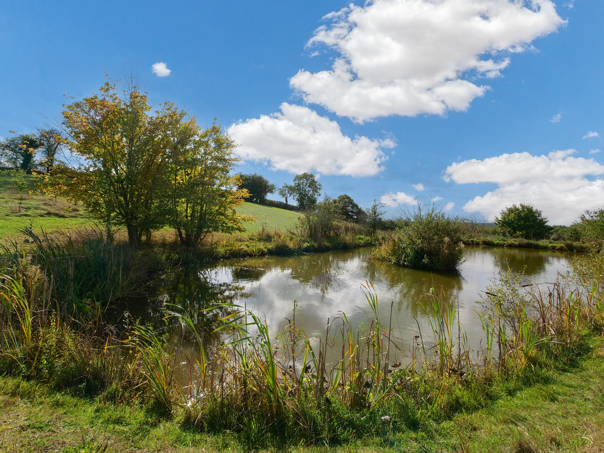 The undulating land opens out to approximately 7 acres of grazing, a 4.5 acre wildflower meadow, traditional mixed native hedgerows and thousands of young native trees and a small lake with a floating island stocked with carp.