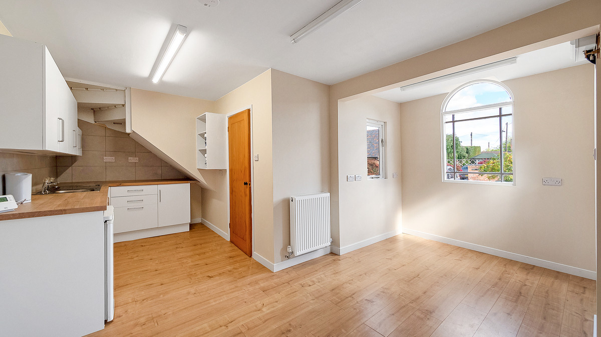 The separate one-bedroom annex provides even more flexible living space with a room on the ground floor, fitted with a kitchenette and worktop height power points enabling it to be used either as a workshop/studio or as independent living space. The first floor of the annexe benefits from a single carpeted room with a large feature window and an ensuite shower room. Each floor of the annexe can be accessed separately providing the option to use both spaces independently as studio and office space or together as additional independent accommodation. There is also garage space to the side of the annexe in which is located an oil-fired boiler providing central heating throughout.