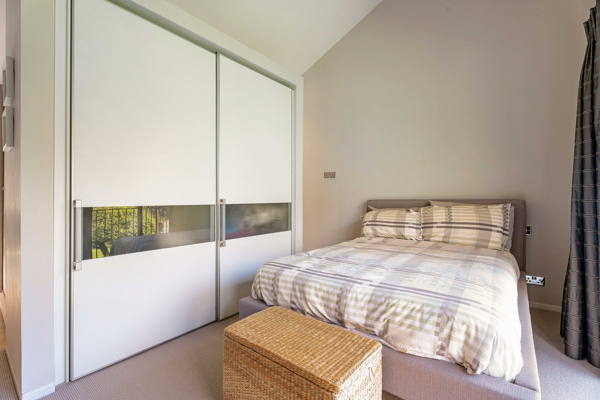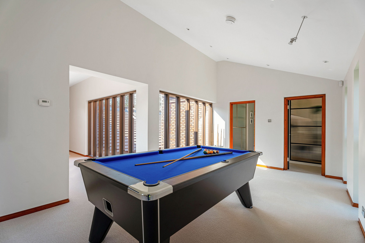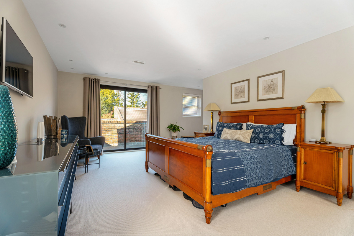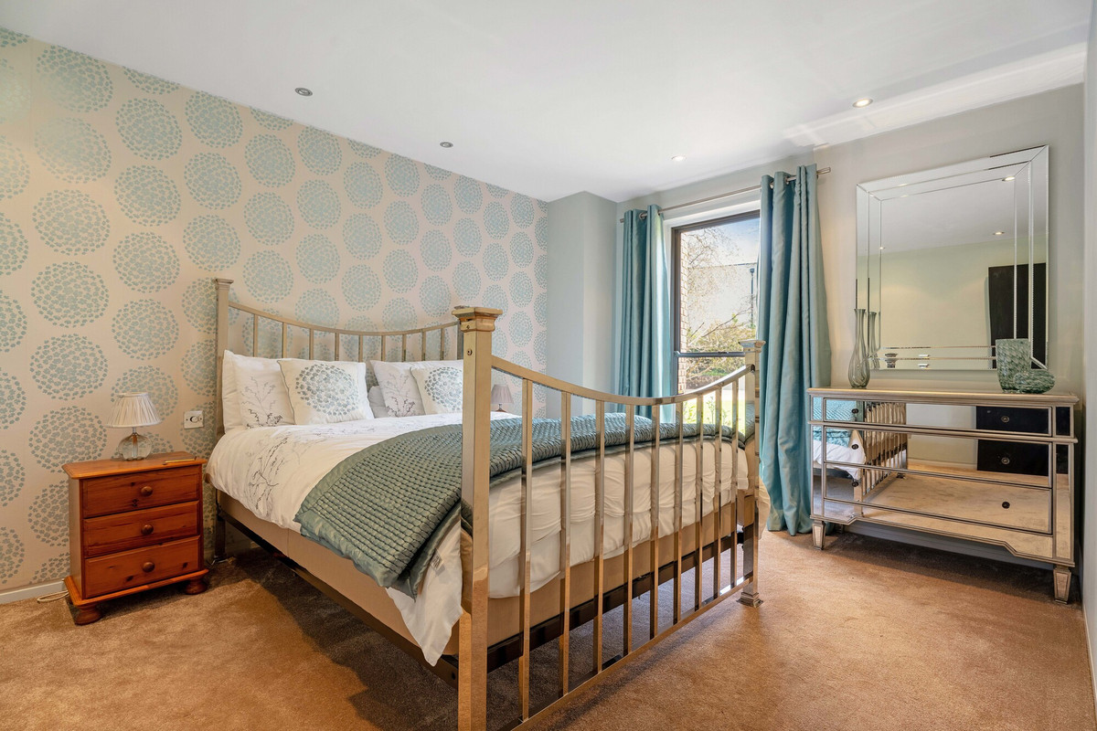 In the east wing is a ground floor bedroom, bathroom and sixth bedroom, currently set up as a Pilates studio. The conservatory adjoins.