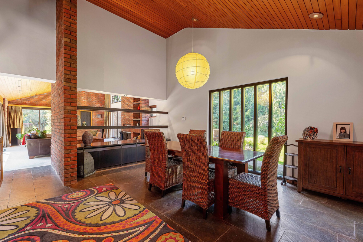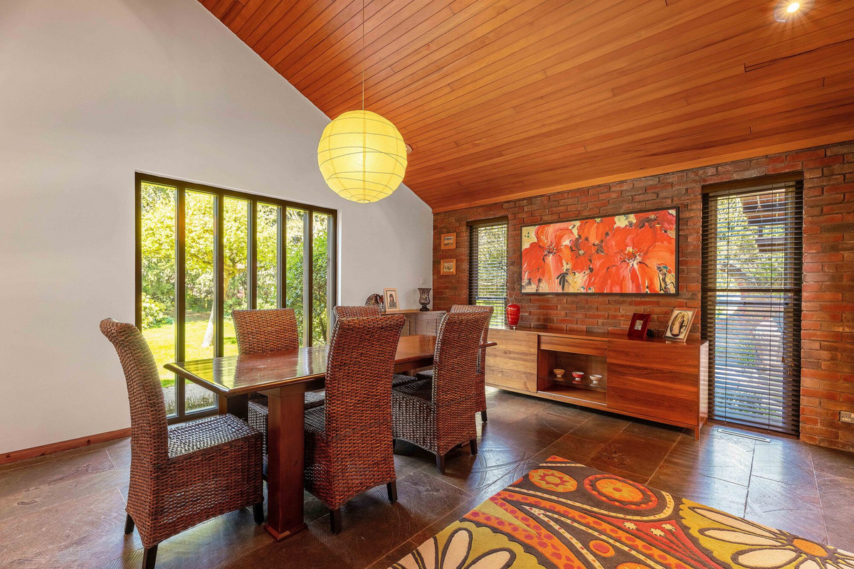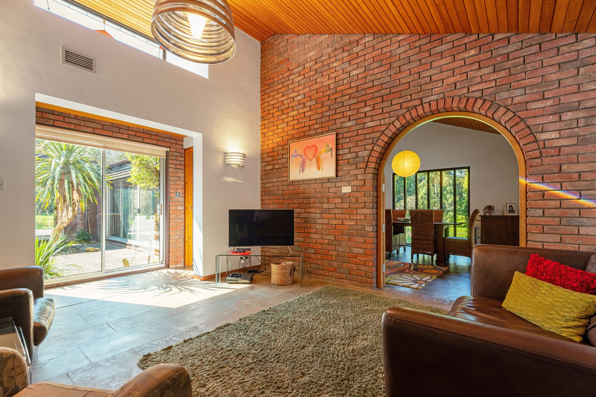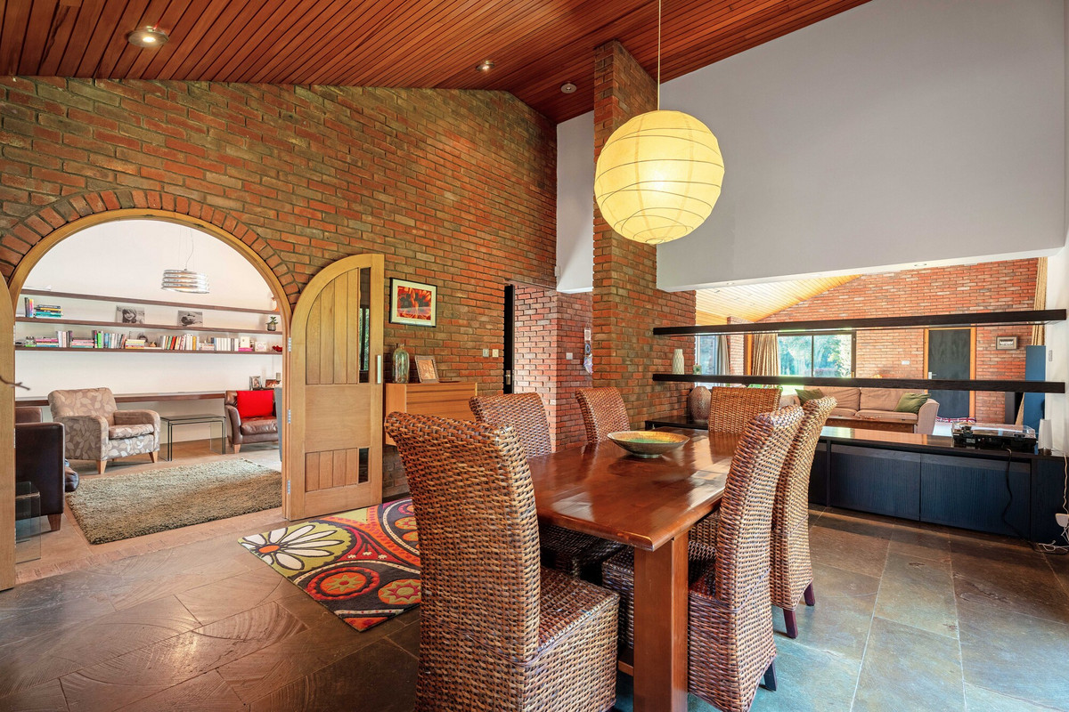 Wonderfully unique home providing extensive accommodation with features such as stone flooring, vaulted ceilings, and exposed brick and timber. A central courtyard, and numerous windows, doors and glass walls allow masses of light to flood in from all sides while offering views of the beautiful gardens.