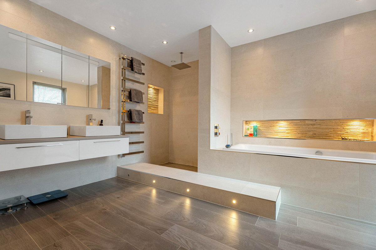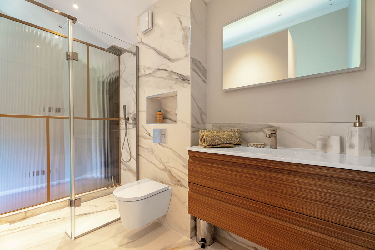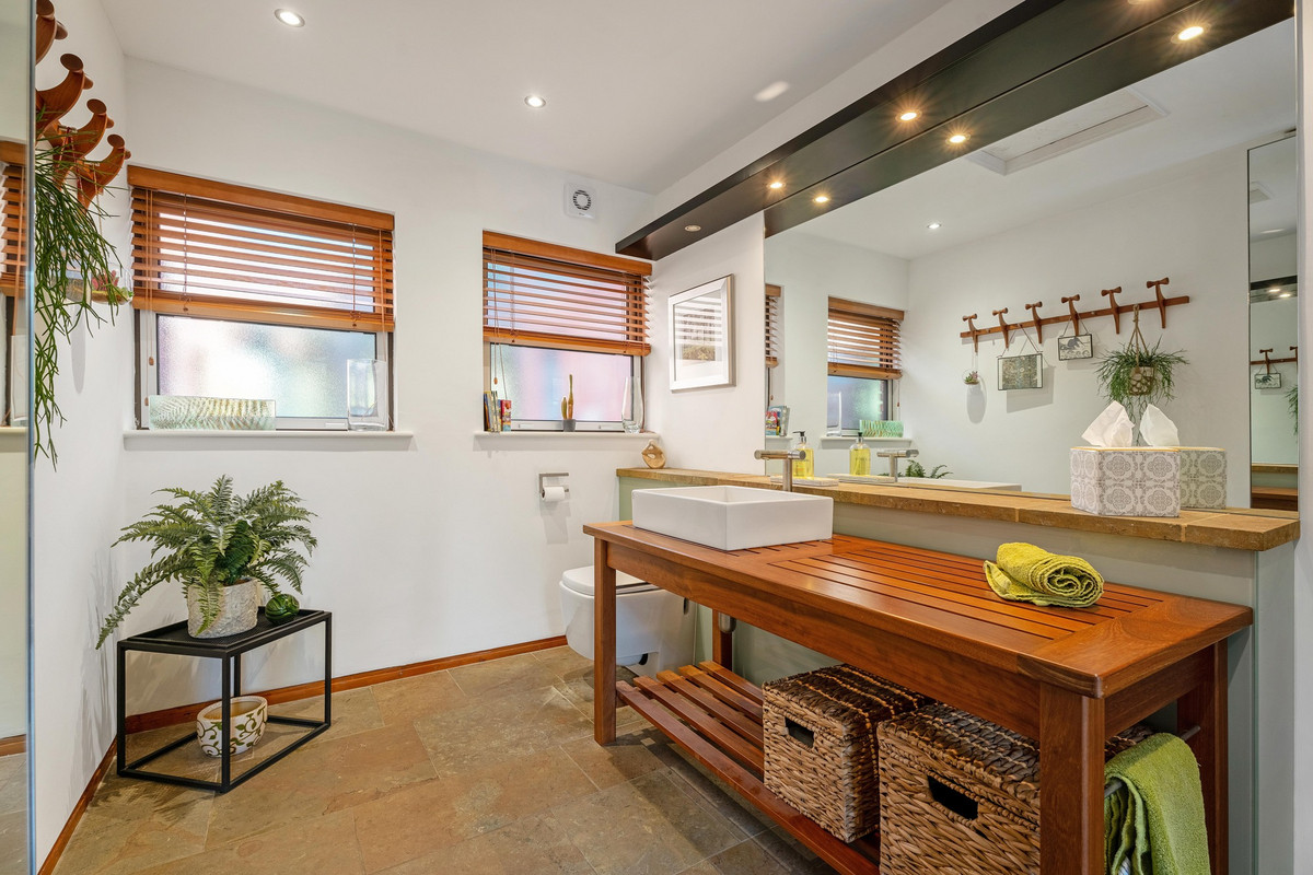 There are three downstairs cloakrooms and a gardener’s toilet.