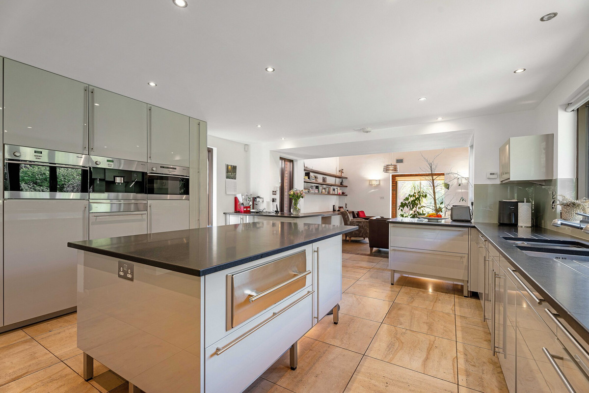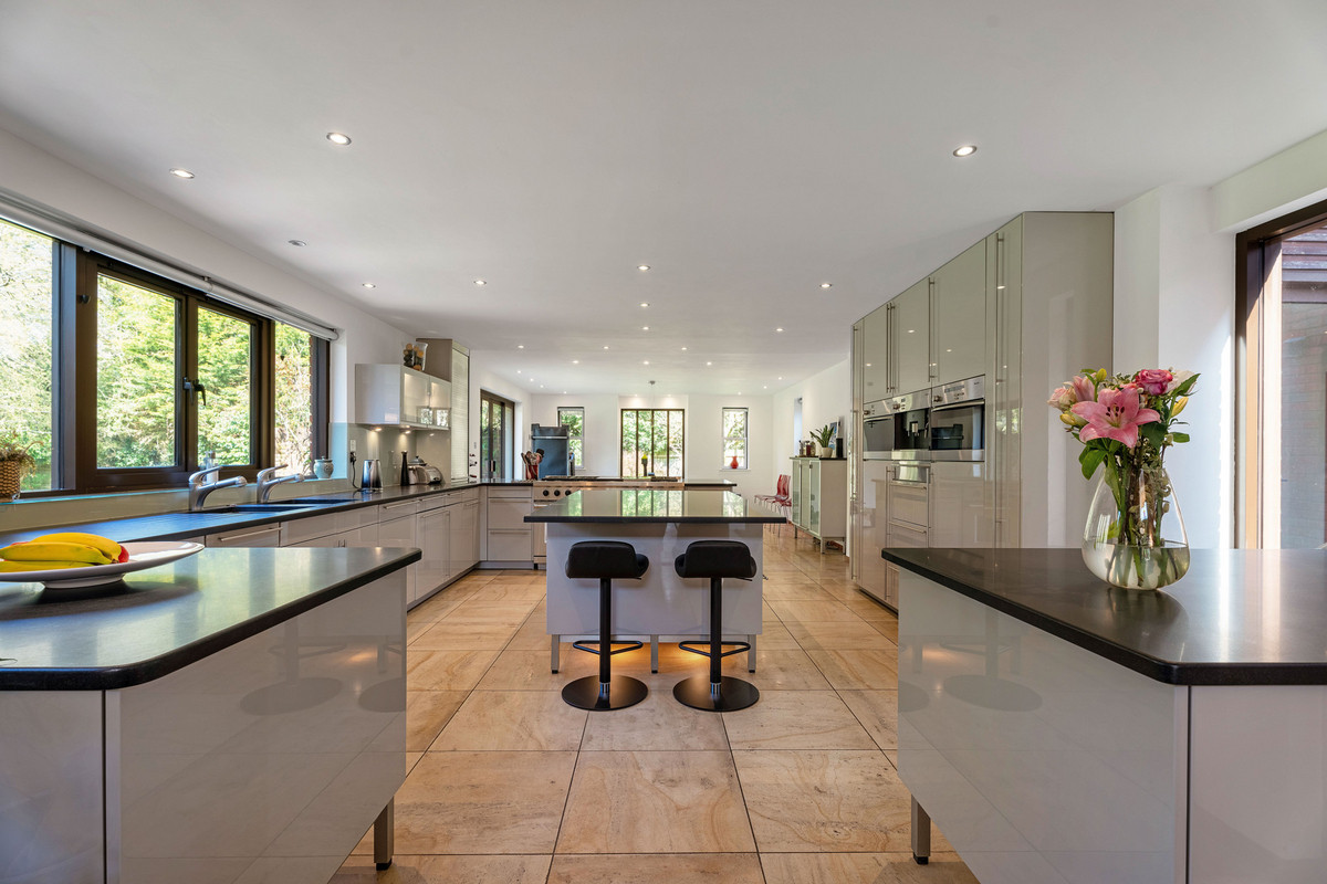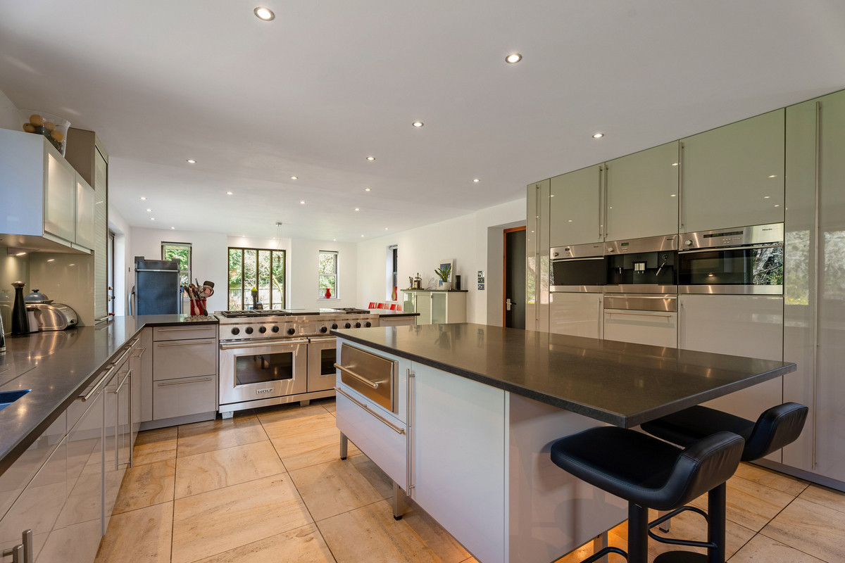 A simply stunning kitchen/family/breakfast room with underfloor heating throughout. Beautifully fitted with a large central island, double Wolf range with hotplates and gas rings, plate warmer, coffee machine, steamer, microwave and double fridge. Doors to the garden at one end and double doors to the dining room at the other. Access to a fully fitted utility room and separate boot room.