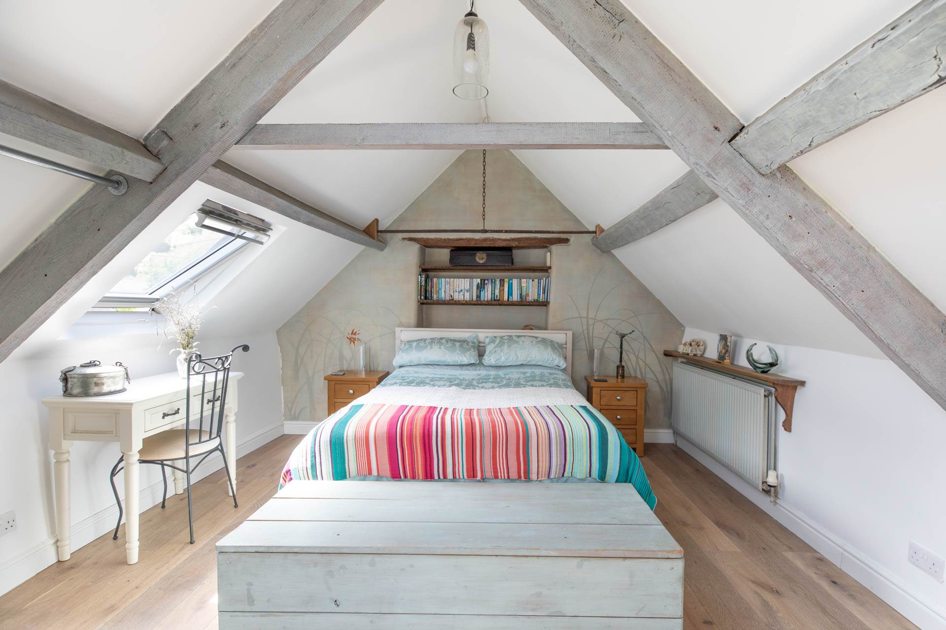 Spanning three thoughtfully arranged floors, the interior is both spacious and versatile, ideal for elegant family living, remote working, or artistic pursuits. The ground floor welcomes with a generous reception hall, a characterful dining room, and a sitting room featuring a wood-burning stove and original stone staircase. The kitchen/breakfast room is a light-filled haven, complete with a stable door opening onto the garden and enhanced by electric under floor heating for year-round comfort in the entrance hall, sitting room and dining room.