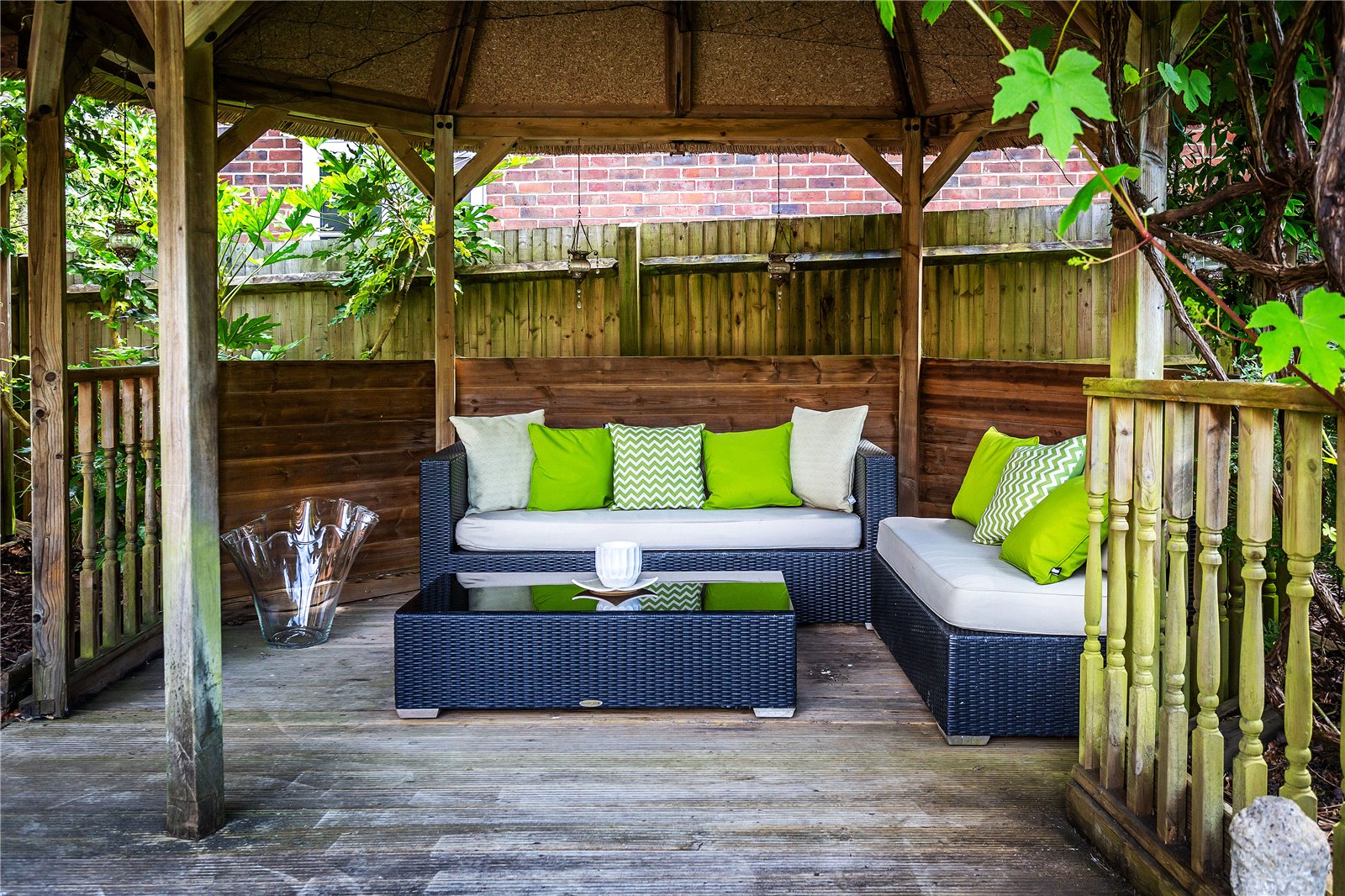 - South-facing garden perfect for summer entertaining with a patio, thatched BBQ area