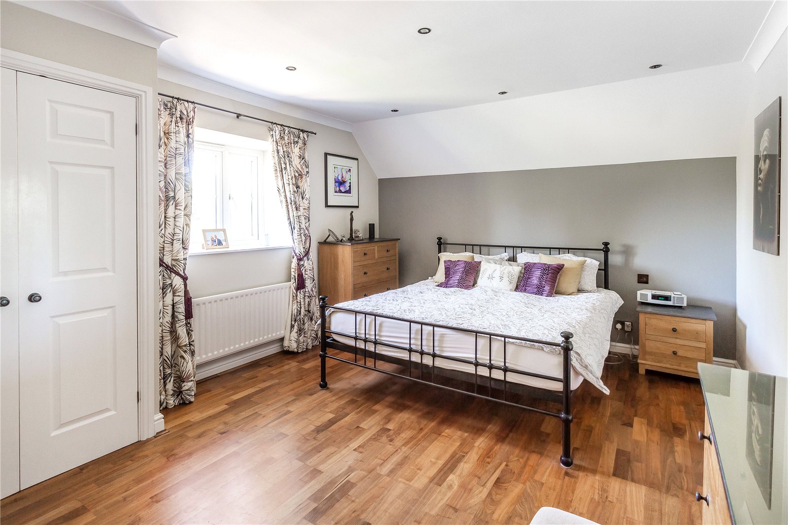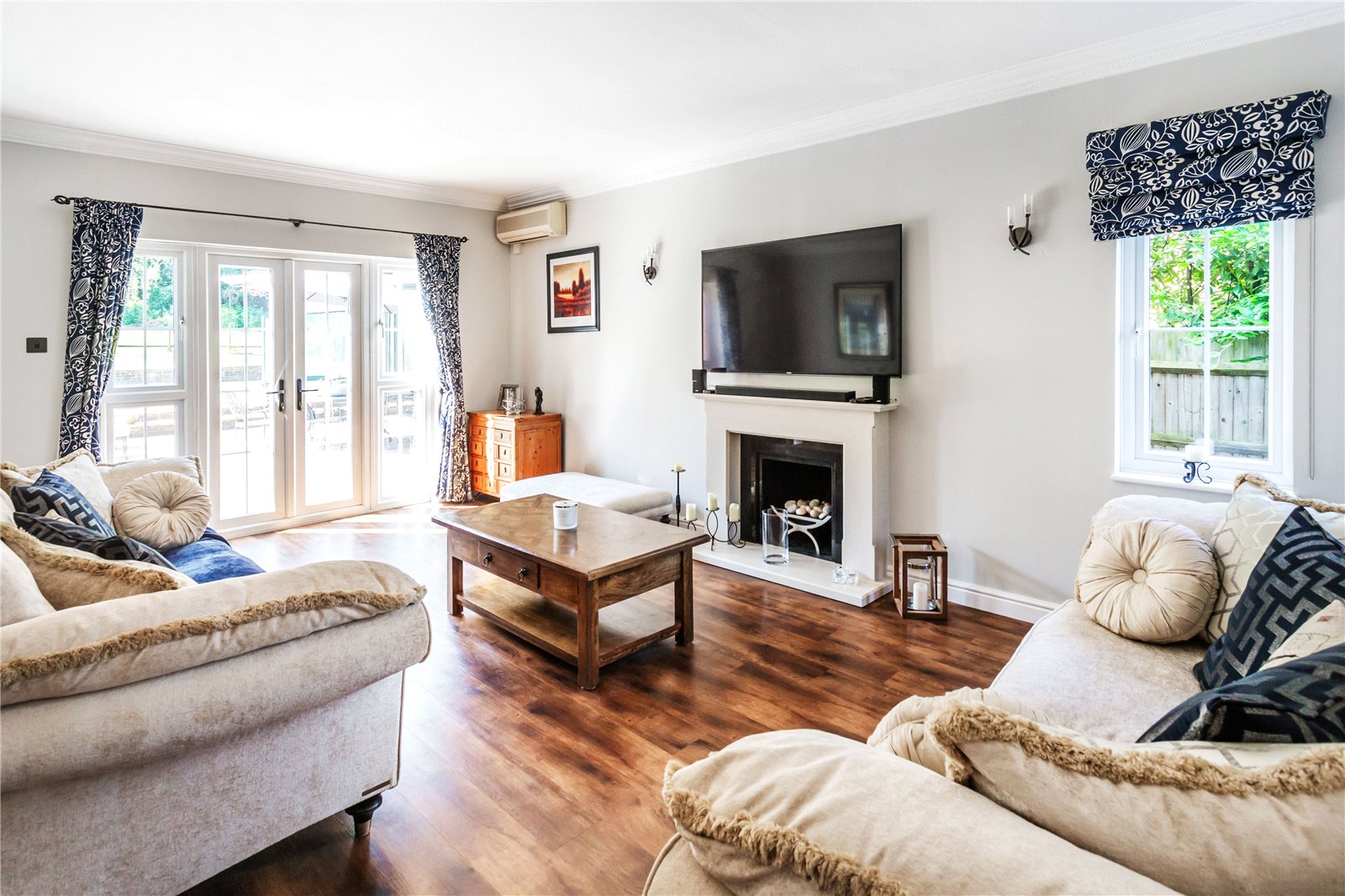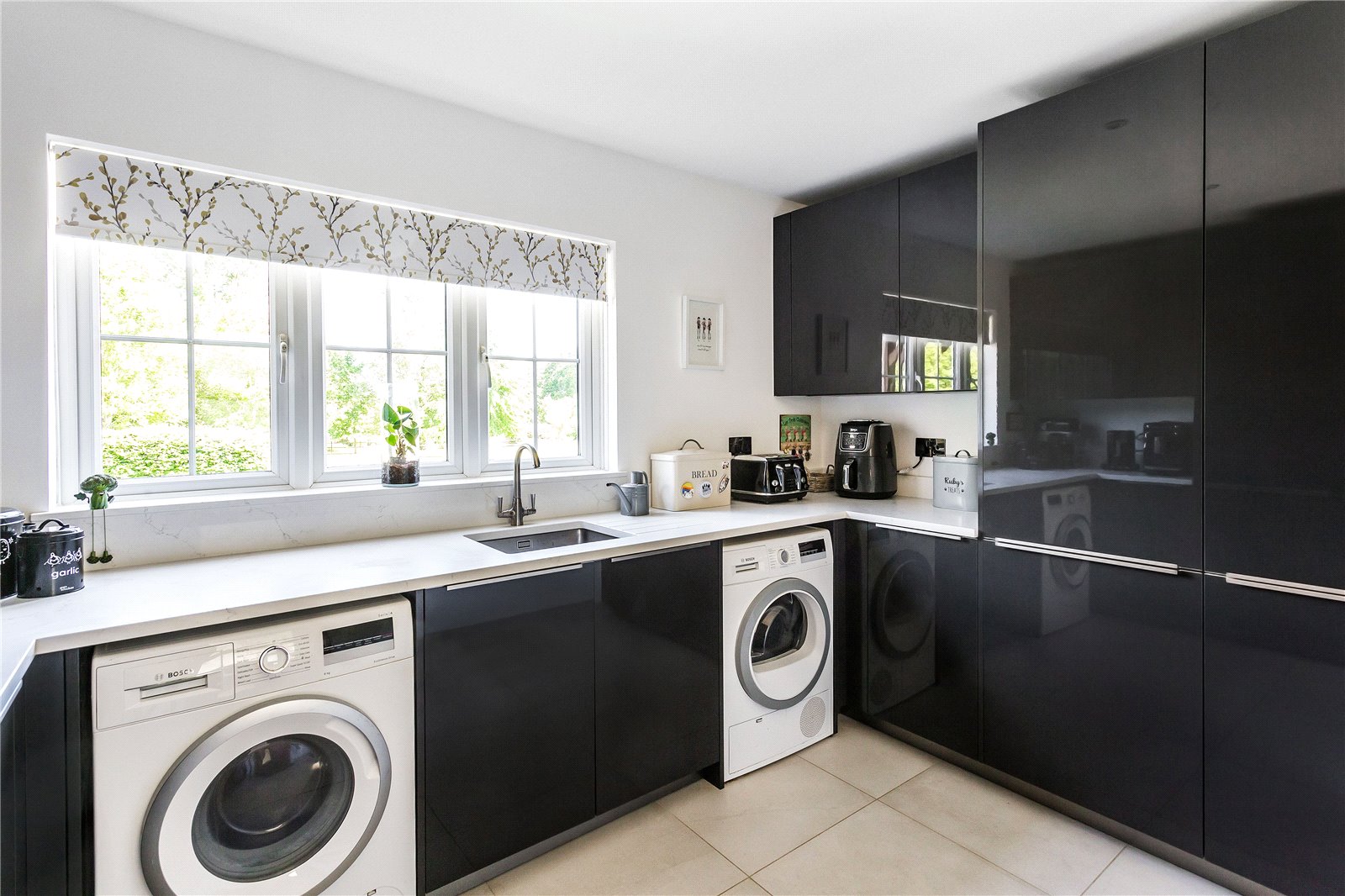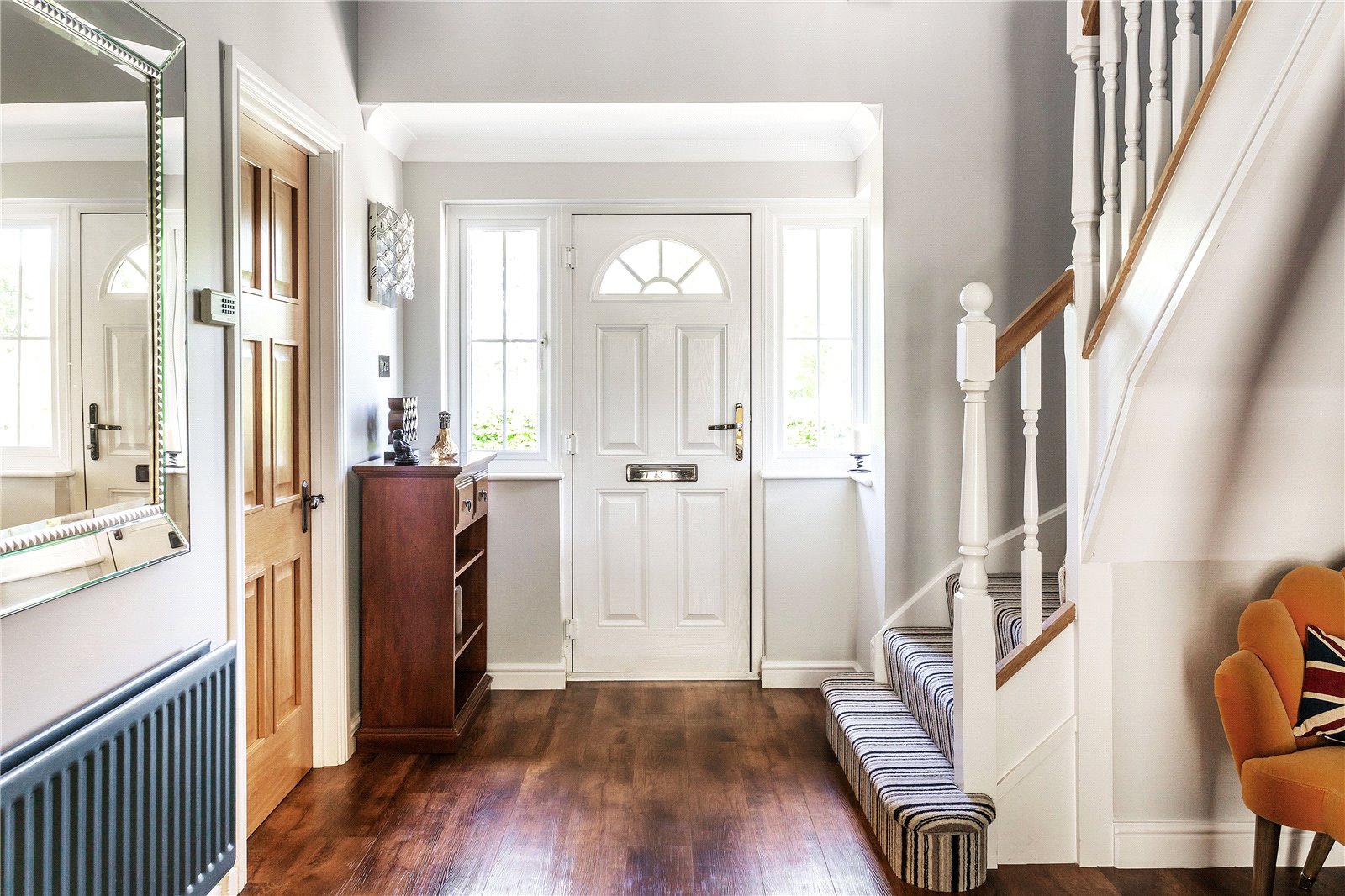 The south-facing back garden is designed with summer entertaining in mind, from stepping out onto the patio to the thatched BBQ area and pergola draped with an established vine, and from the heated swimming pool to the meadow at the end of the garden, which can be opened up to be more garden, should you wish. It is a magical place with a fabulous blend of space and tranquillity surrounded by woodland.