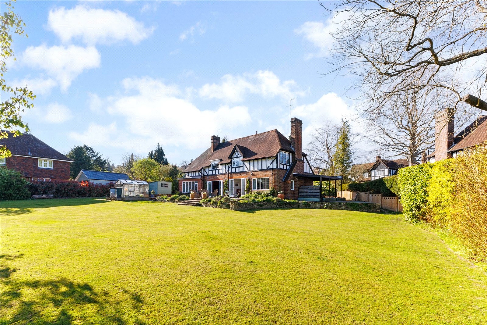 Two timber outbuildings provide useful storage and there's potential to create a self-contained annexe with its own private entrance. With generous parking, a garage, carport and an EV charging point, this home is as practical as it is picturesque offering space, style and superb connectivity in one of Surrey's most desirable locations.