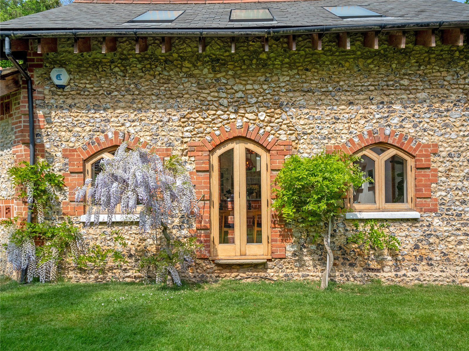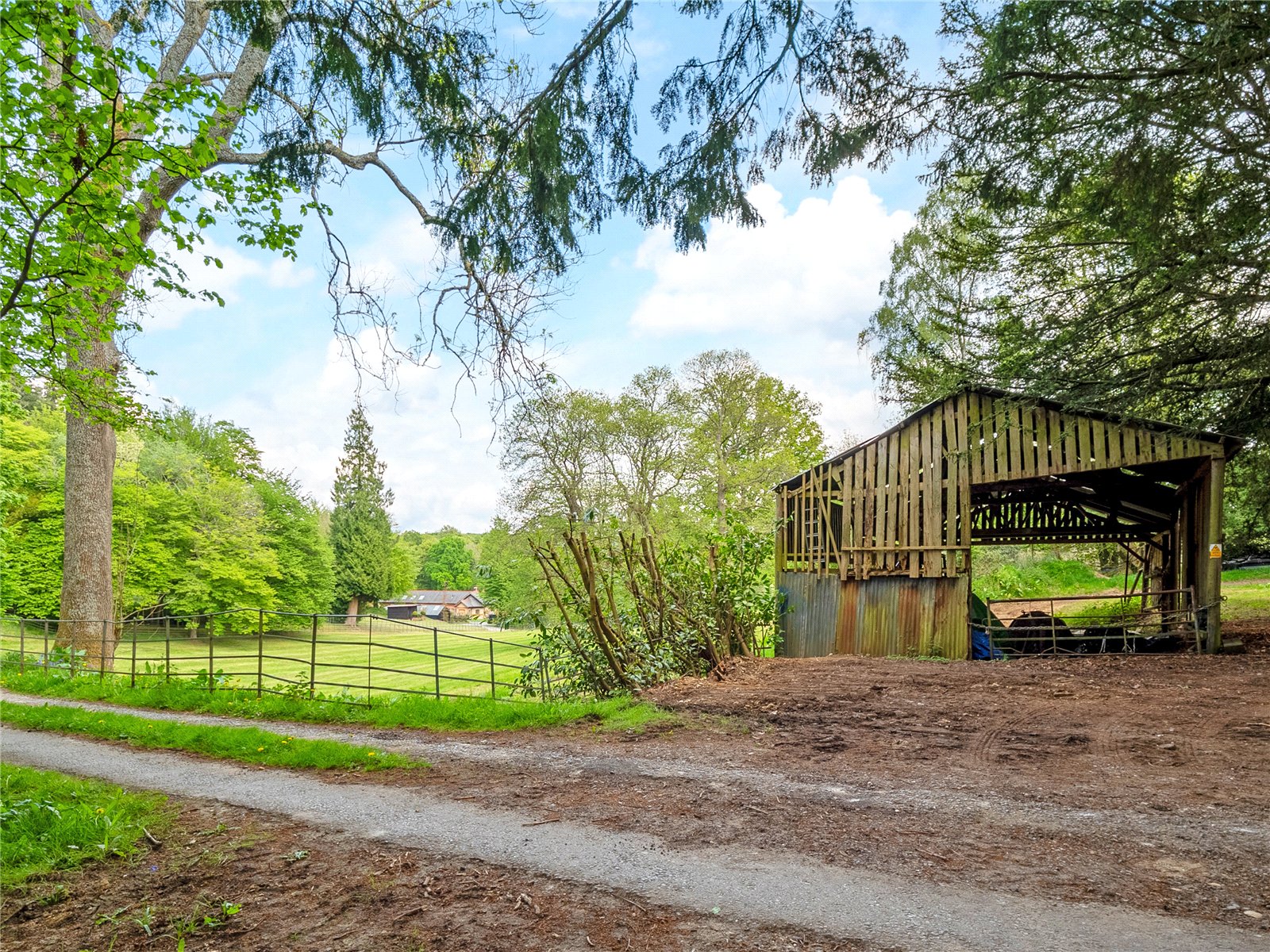 At its core lie a two bedroom annex, four lush paddocks with stabling and immaculately kept gardens. The feature which brings this estate into a league of its own is the planning permission to develop a four bay garage with accommodation or entertainment rooms above, as well as two substantial barns set within the woodland, that could be accessed using a proposed second driveway leading onto the A246.