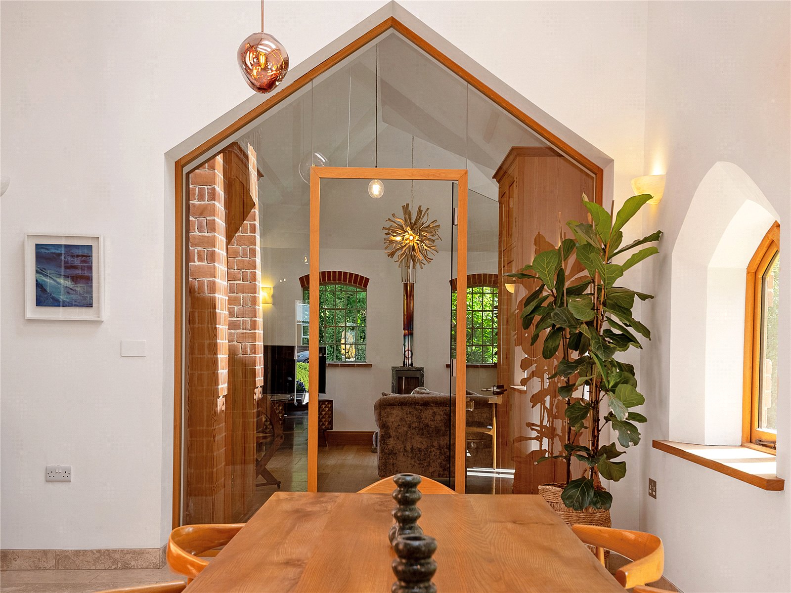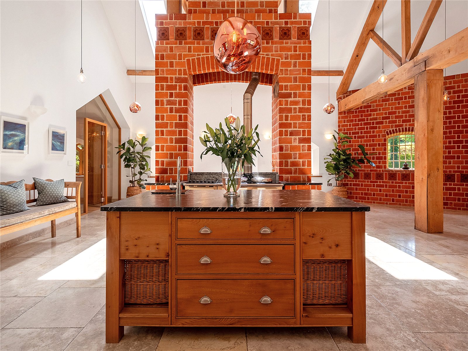 Step inside this magnificent home and you're immediately struck by the spectacular double-height kitchen and family room lined with handmade red bricks, the true heart of the house, filled with light and designed for both grand entertaining and everyday living.
