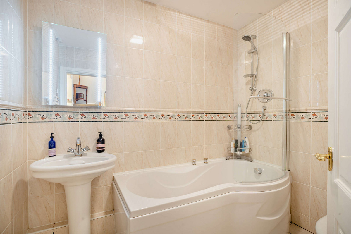 The family bathroom, adjacent to these bedrooms, holds a three piece suite to include a pedestal wash hand basin, low level WC and a bath with shower over.