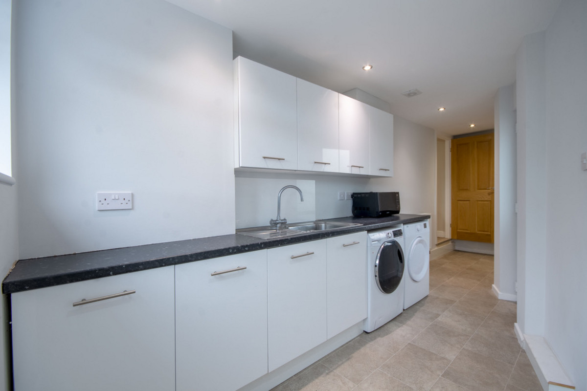 A large utility room provides additional storage and laundry facilities, with direct access to the front of the house. From here, there is also internal access to the garage.