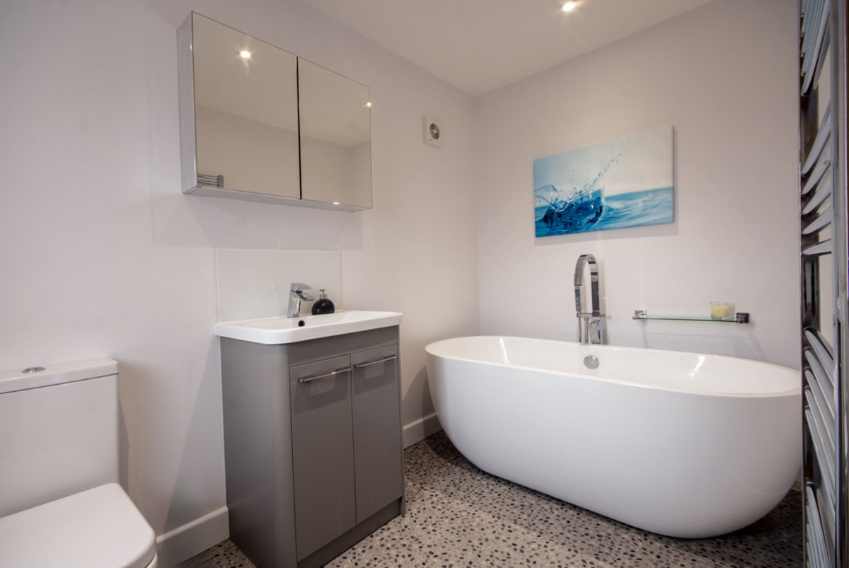 Upstairs, the main bedroom is a fantastic retreat, offering space for a super-king bed, with a dressing room, and a beautifully appointed en-suite with walk-in shower and a vanity unit. The family bathroom features a freestanding bath, stylish vanity, a WC and towel radiator. Two further double bedrooms on this floor are equally well-presented, with garden views and ample space for furnishings.