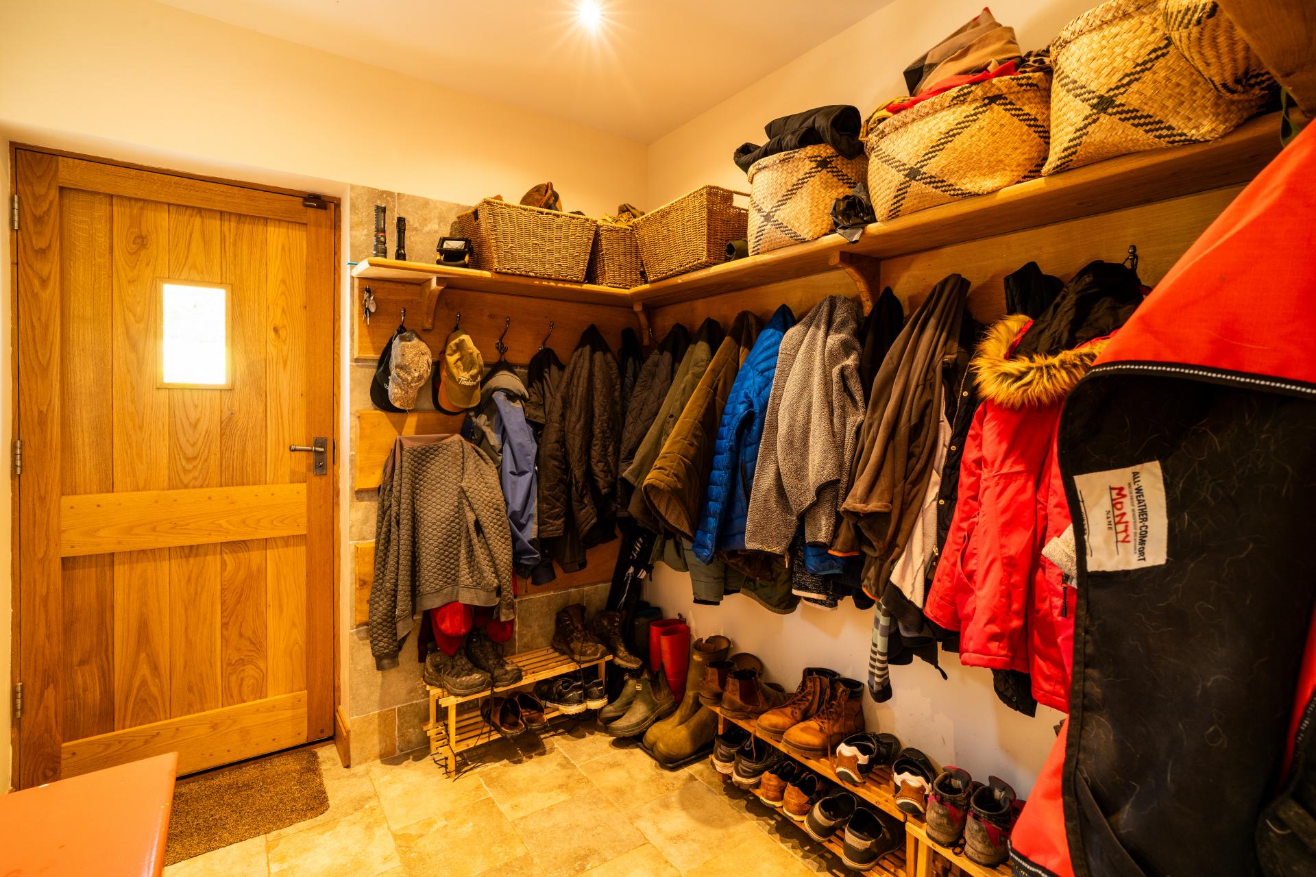 Cloaks rail. Limestone tiled floor with underfloor heating. Ceiling downlighting.