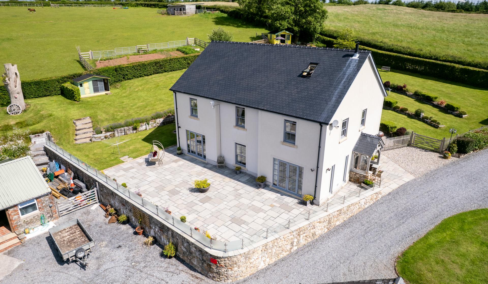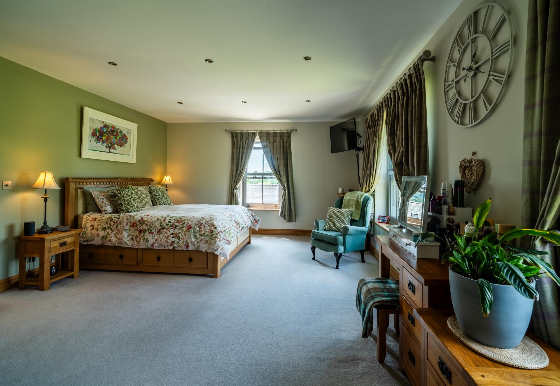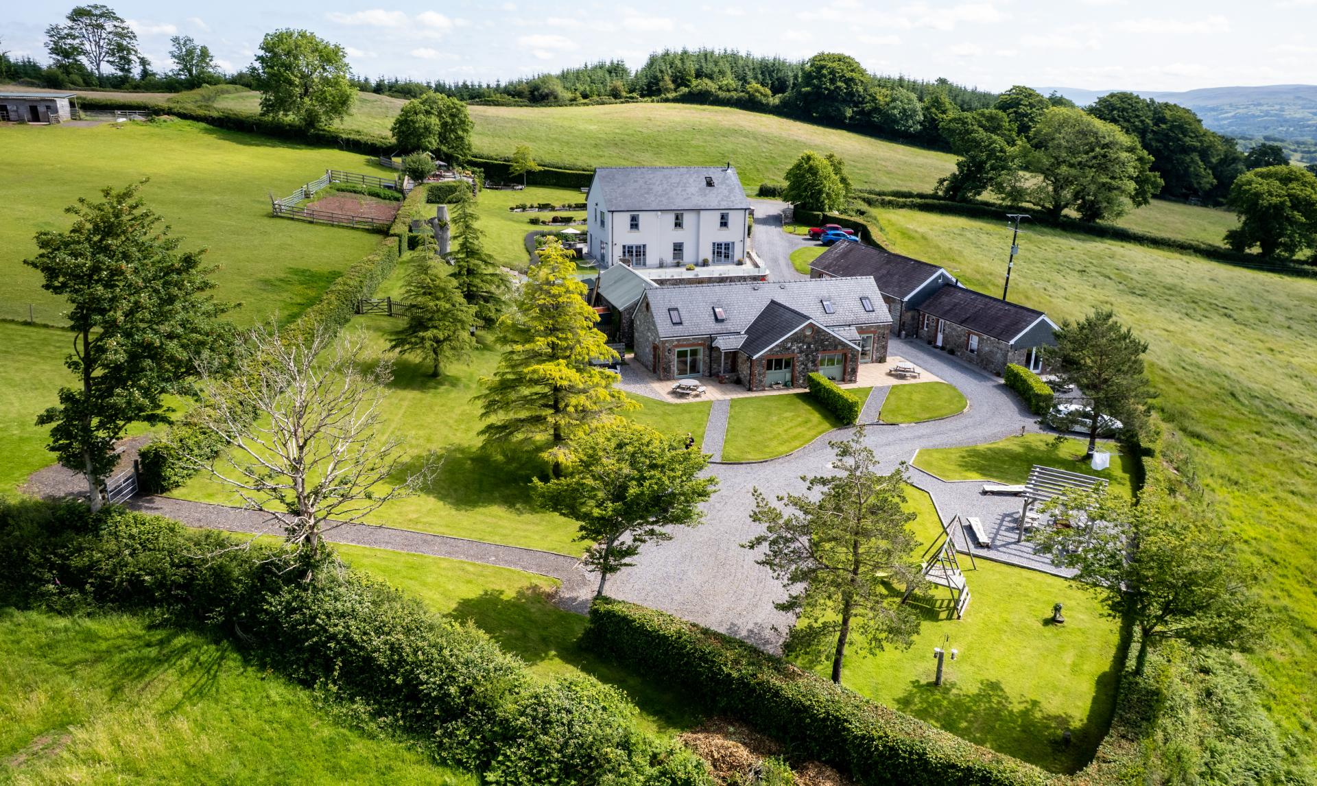 Built to exacting standards, the principal farmhouse sits in an elevated position on the homestead, overlooking the three luxurious holiday cottages and set within beautifully landscaped grounds of approximately five acres, complete with stables and a general-purpose building.